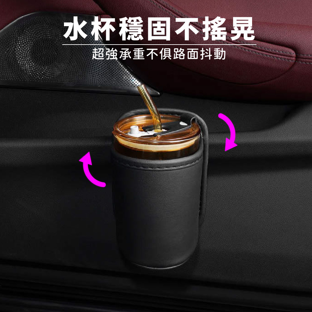 皮革吊掛水杯架可固定於車內頭枕、椅背或側邊,輕鬆收納水杯、飲料瓶與隨手物品。採用質感皮革材質,外型簡約有型,提升車內整體質感。免鑽孔安裝,不佔空間,行車途中取放便利,避免飲料傾倒弄髒車內,適合日常通勤與長途駕駛使用,是實用又美觀的車用收納配件。