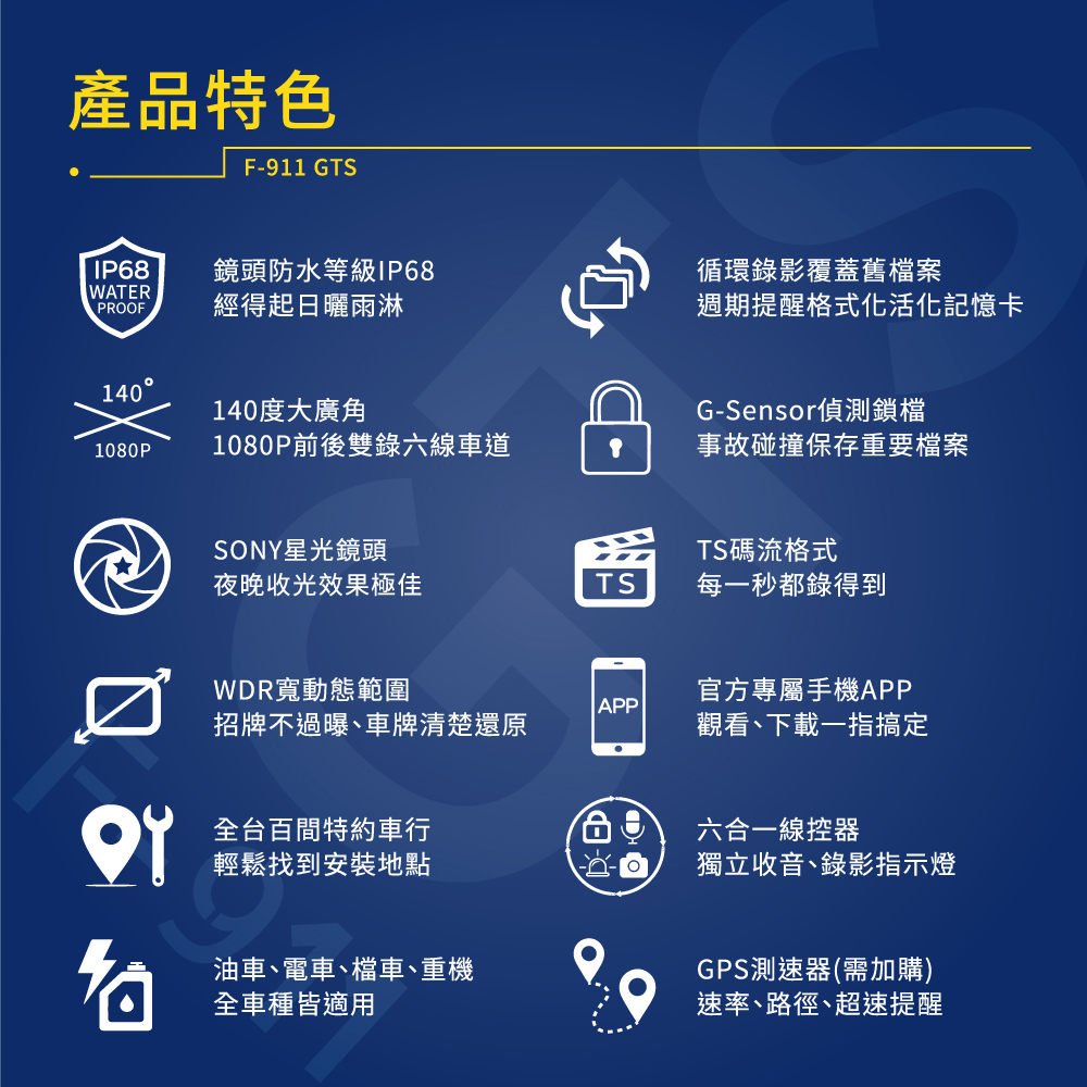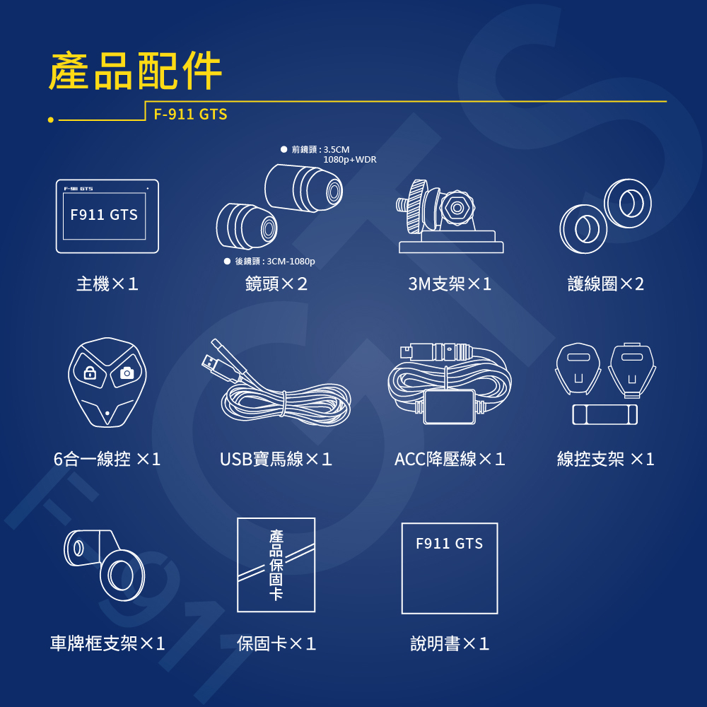 配件:F-911GTS主機、鏡頭x2、寶馬線x1、