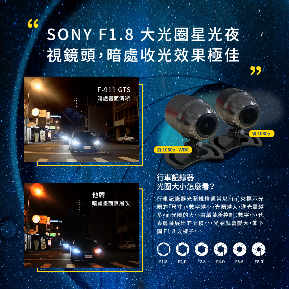 💎F-911GTS使用WDR寬動態SONY鏡頭,強化光線變化時的收光效果,不怕突如其來的變化