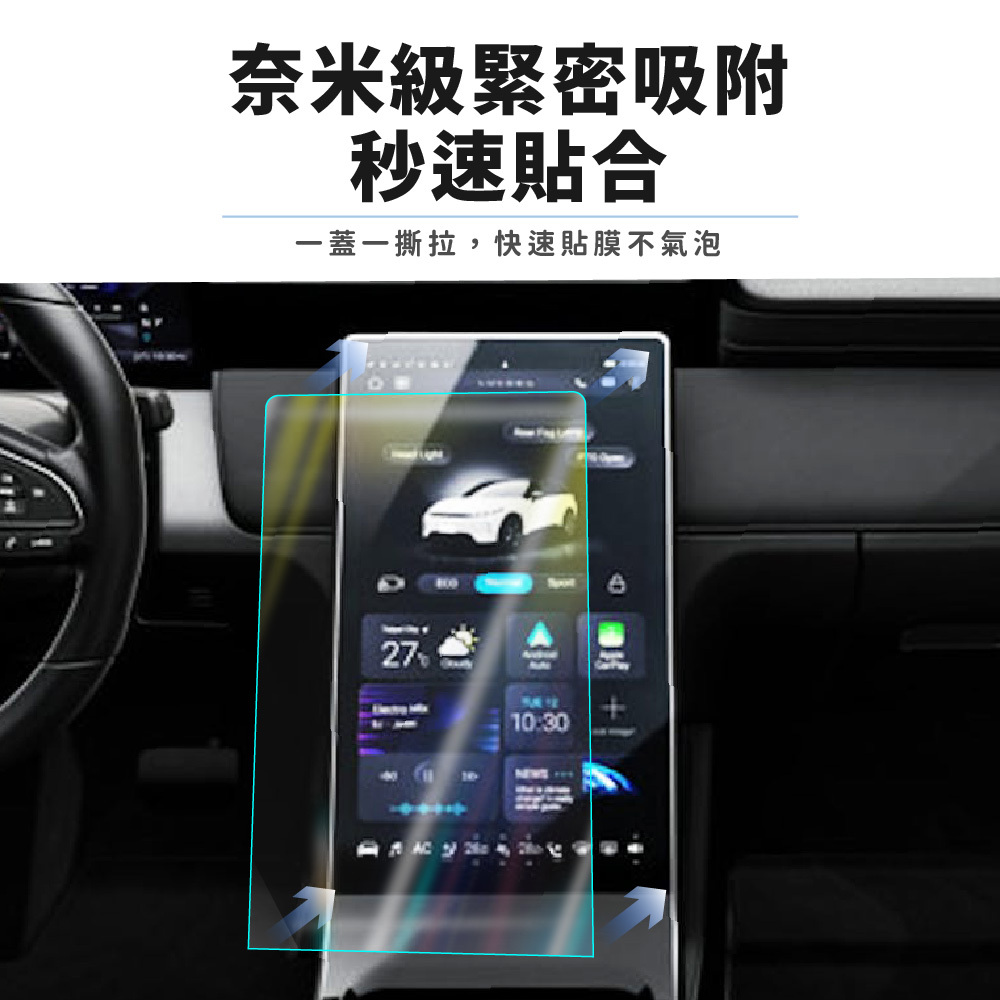 中控螢幕鋼化膜具備 9H 硬度,能有效防止刮傷與撞擊,高清透光設計確保畫面清晰,並搭載防指紋塗層,減少指紋與油污殘留。部分款式提供霧面防眩光功能,降低陽光直射時的反光干擾,提升駕駛與乘客的視覺體驗。
