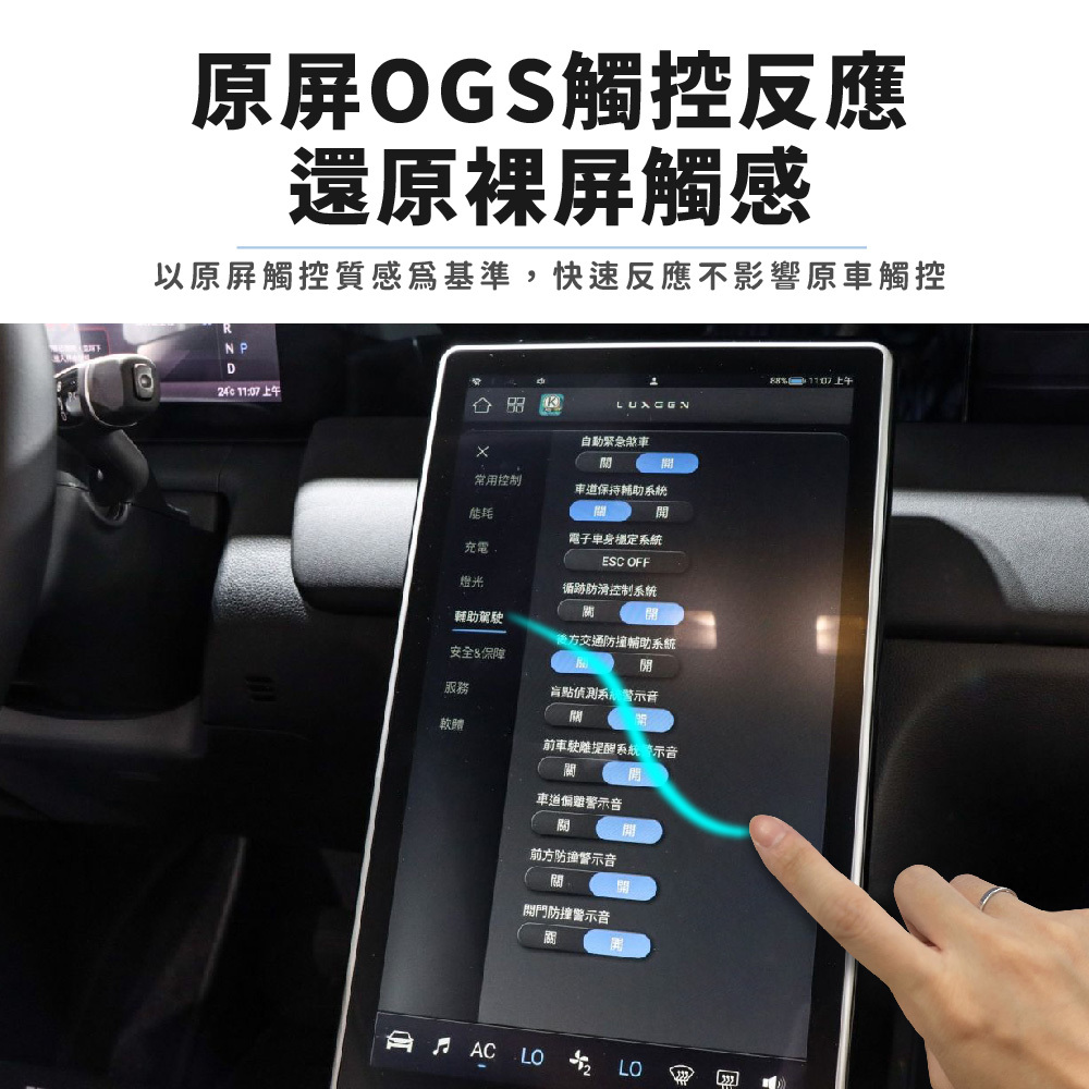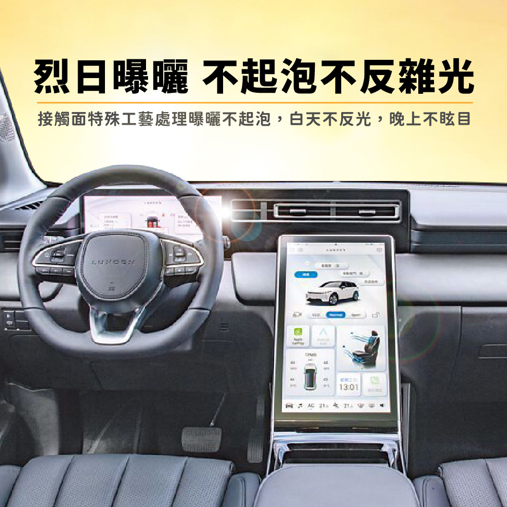 Luxgen N7 採用 15.6 吋直立式中控螢幕與 12.3 吋數位儀表板,為了保護顯示螢幕免受刮傷、指紋汙染與反光影響,鋼化玻璃保護膜成為必備的內裝升級配件。
