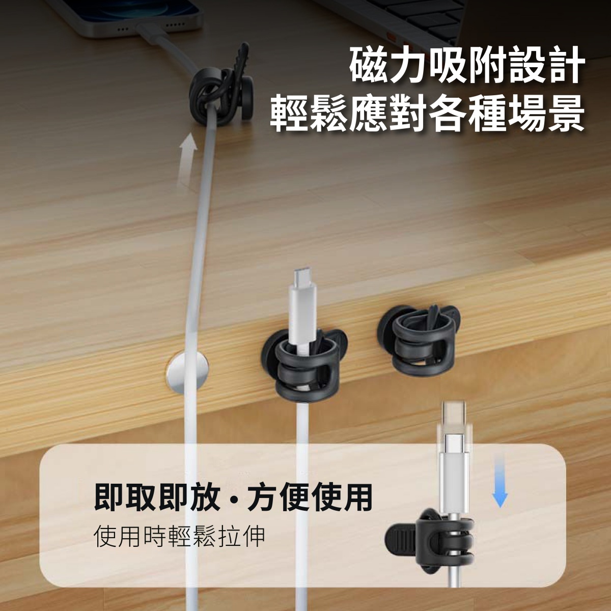 🏆磁吸式矽膠理線帶~輕鬆整理線材~