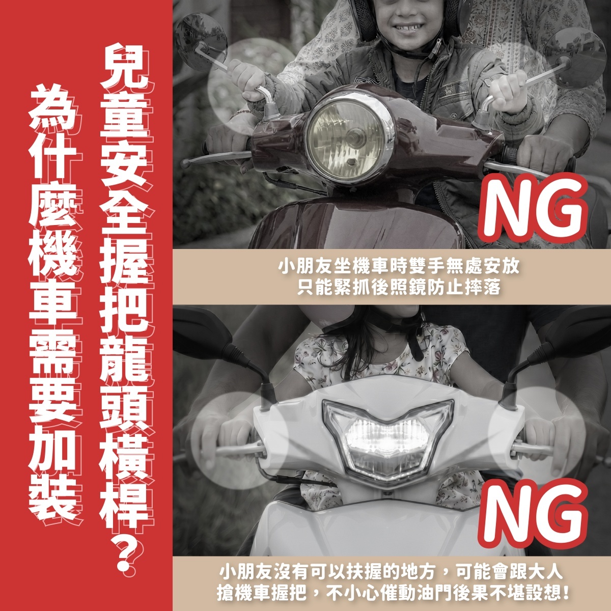 XILLA機車裸把專用兒童安全把手,專為機車裸把設計,提供小朋友在騎行過程中的額外安全保障。這款安全把手採用高強度材料製成,堅固耐用,能有效分擔兒童的騎行重心,減少乘客不穩定的情況。簡單的安裝方式讓車主輕鬆將把手固定於裸把上,無需額外改裝,適配大多數裸把車型。