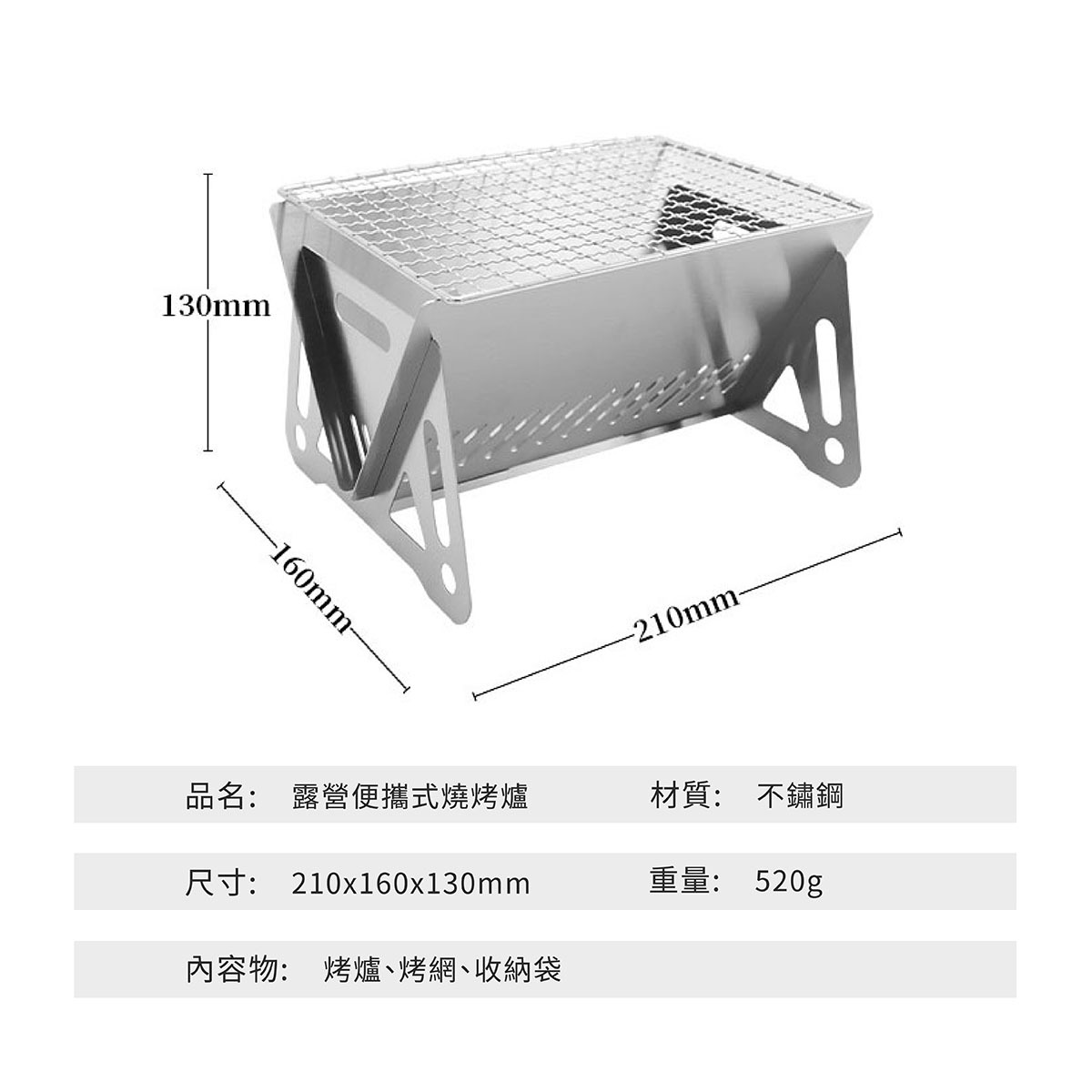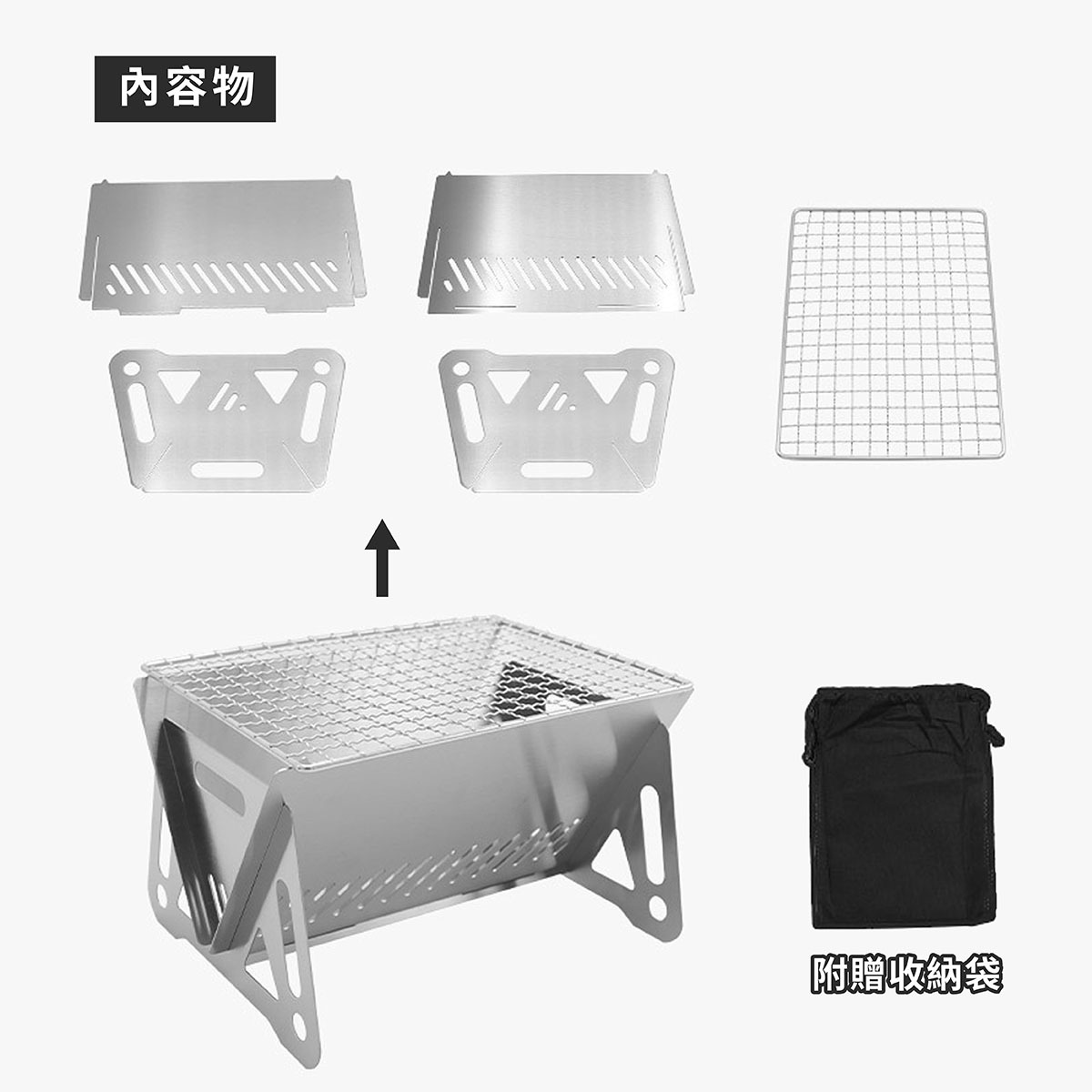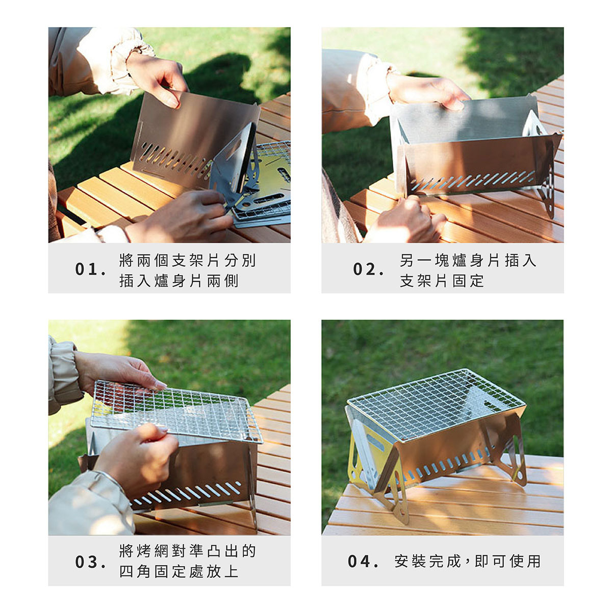「露營便攜式燒烤爐是一種輕便、易攜的戶外烹飪設備,專為露營、野餐、釣魚或其他戶外活動設計。它提供一個方便的燒烤平台,使用戶能夠在露天環境中輕鬆享受燒烤美食。燒烤爐採用拆卸式設計,便於收納和攜帶,且具備足夠的耐用性和穩定性,能在各種戶外條件下正常使用。不鏽鋼材料製成,能夠在高溫下長時間使用且不易損壞。裝過程非常簡單,無需複雜工具即可快速搭建,讓使用者能夠更輕鬆地進行戶外燒烤。」