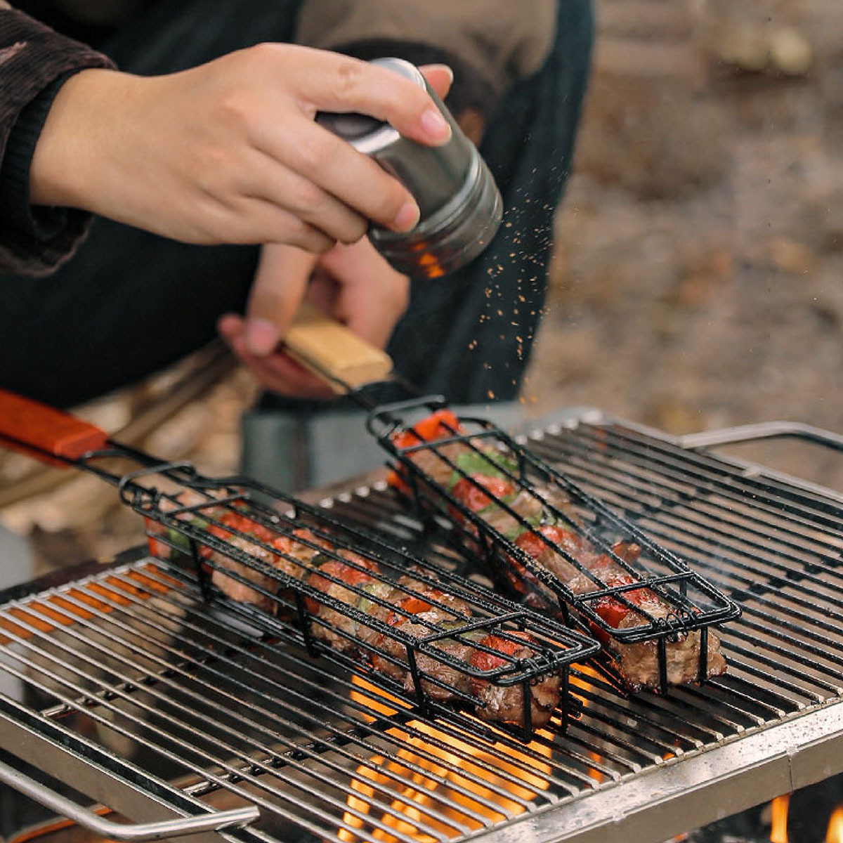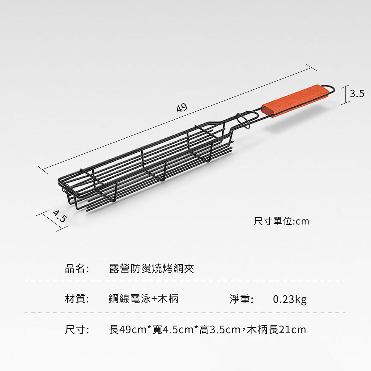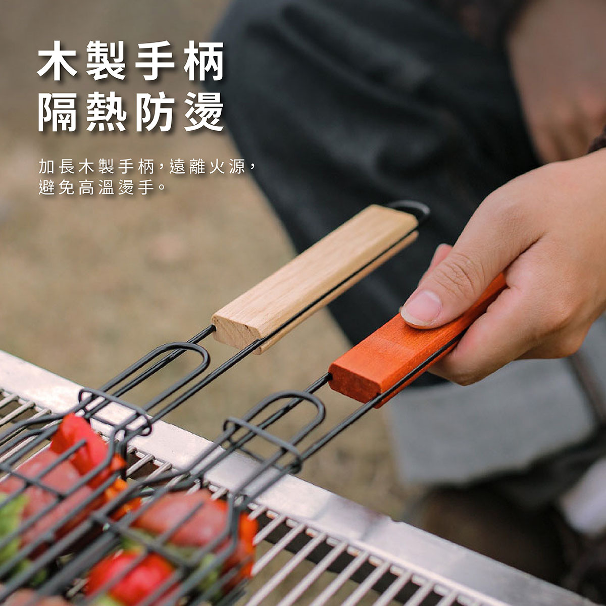 「露營防燙燒烤網夾是一種專為戶外燒烤設計的工具,旨在保護使用者免受高溫燒烤爐具或食物表面燙傷。這種燒烤網夾通常具有長柄設計,讓使用者能夠在燒烤過程中保持適當的距離,從而避免直接接觸火源或過熱的食物。它特別適用於處理烤網上的食材,確保燒烤過程中的安全和便利。設計輕巧、操作簡單,即使是新手也能輕鬆使用,讓戶外燒烤變得更加輕鬆愉快。」