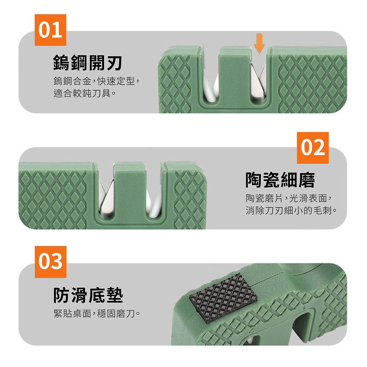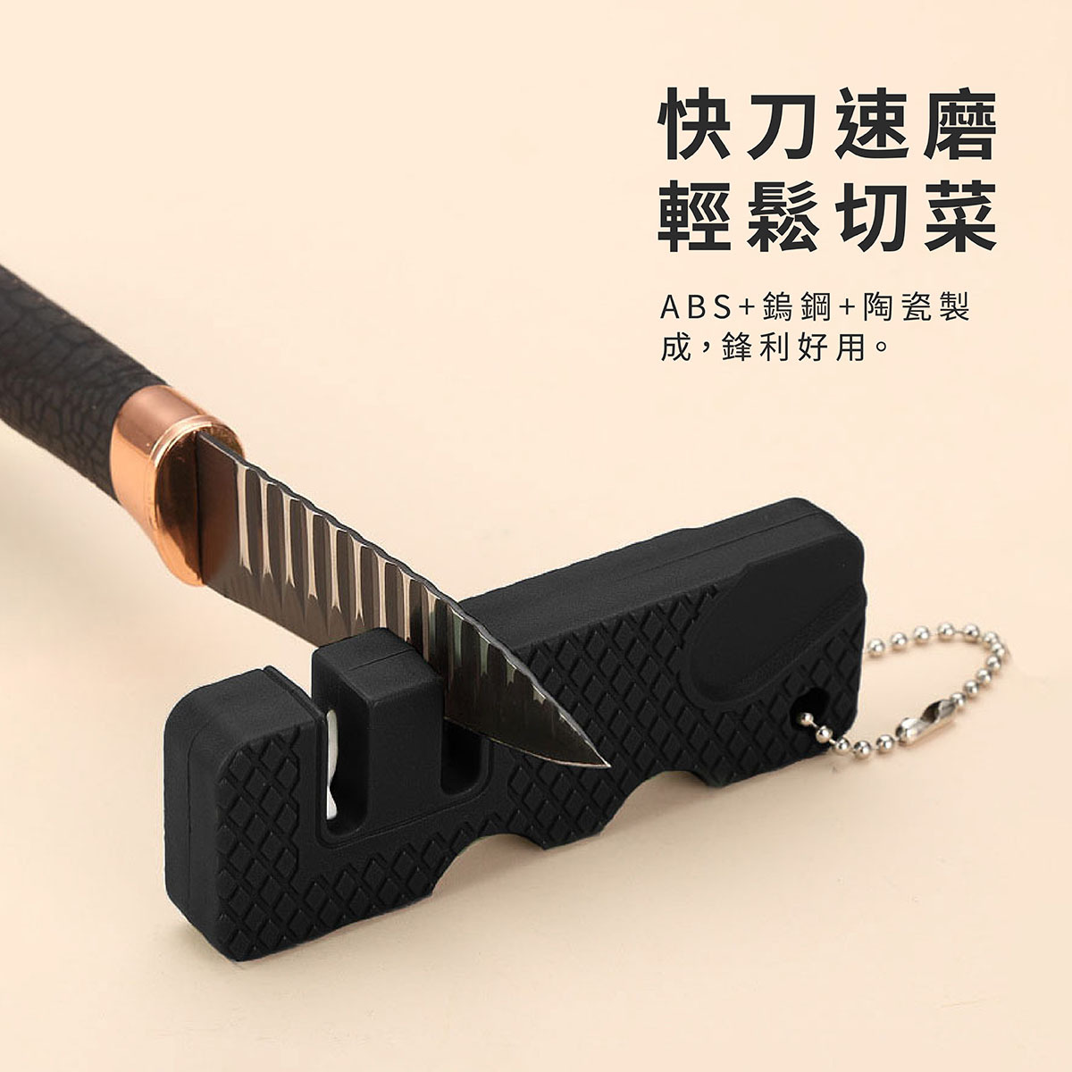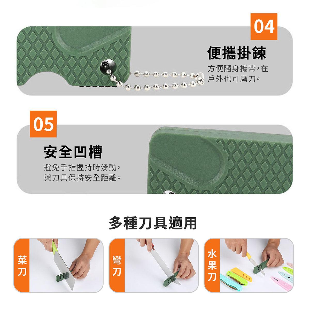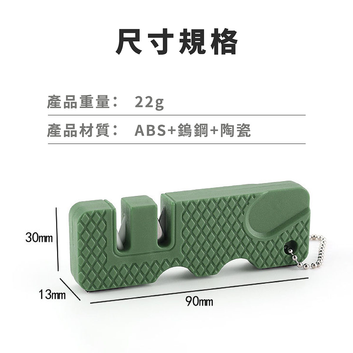 戶外攜帶式磨刀器擁有小巧輕便的設計,重量輕、操作簡單,隨時隨地都能進行刀具維護。由ABS、鎢鋼和陶瓷製成,確保鋒利且耐用。內建便攜掛鍊,輕鬆隨身攜帶,適合露營、登山和戶外活動。安全凹槽設計可避免握持時手指滑動,提升使用安全性,成為戶外愛好者必備的磨刀工具。