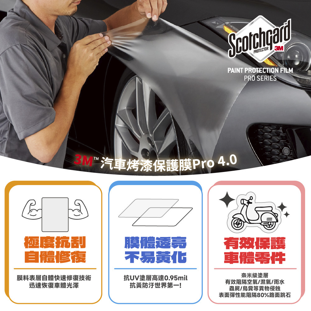 ⭐超跑等級保護膜:採用3M Pro Series頂級烤漆保護膜,全球車廠及航太工業指定,通過300KM/時速耐衝擊認證。