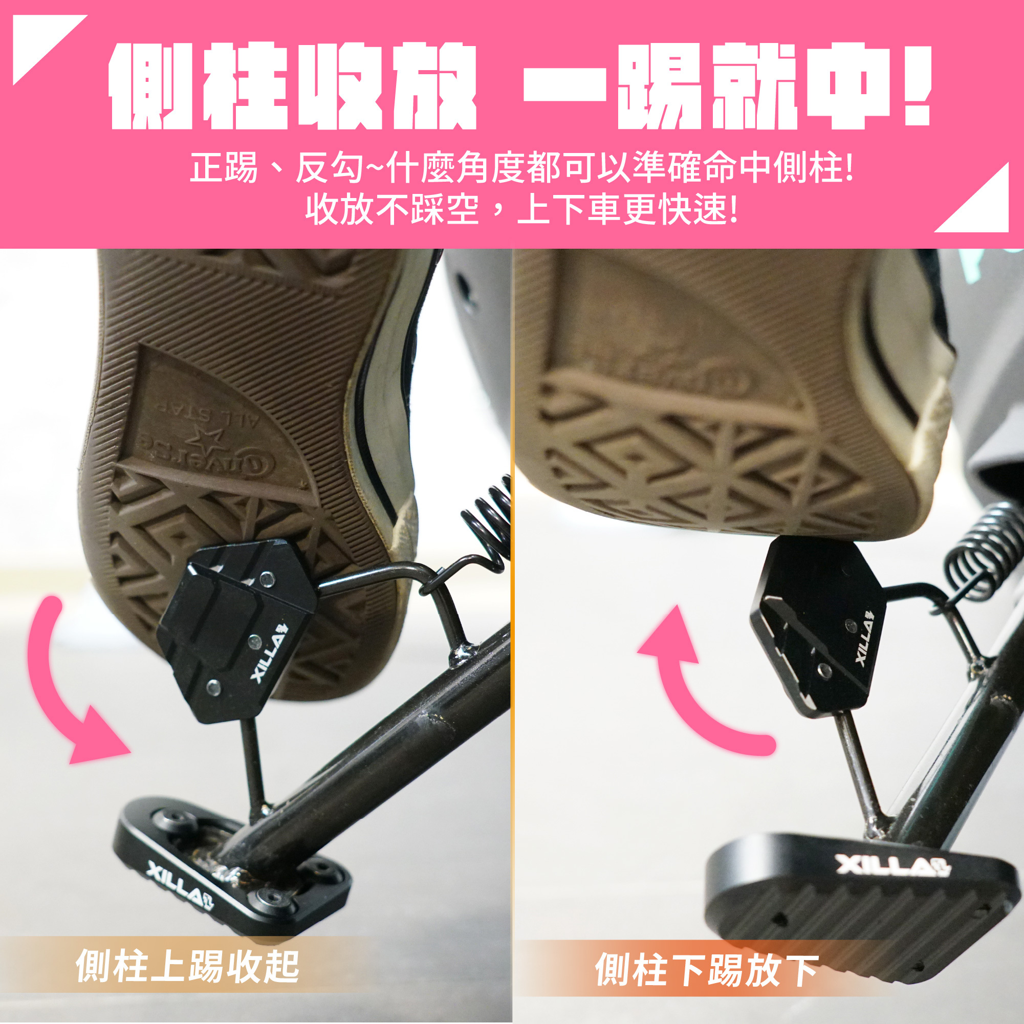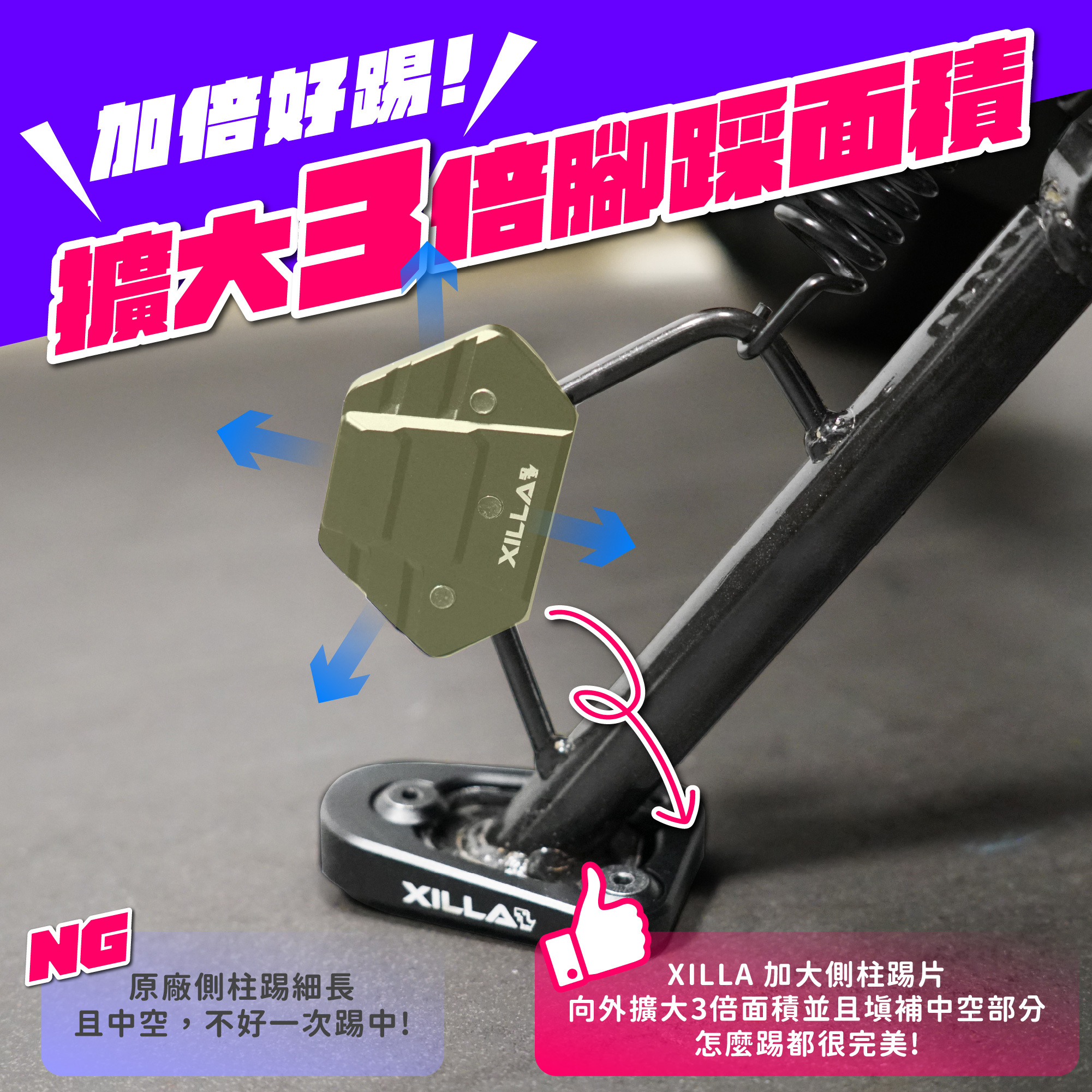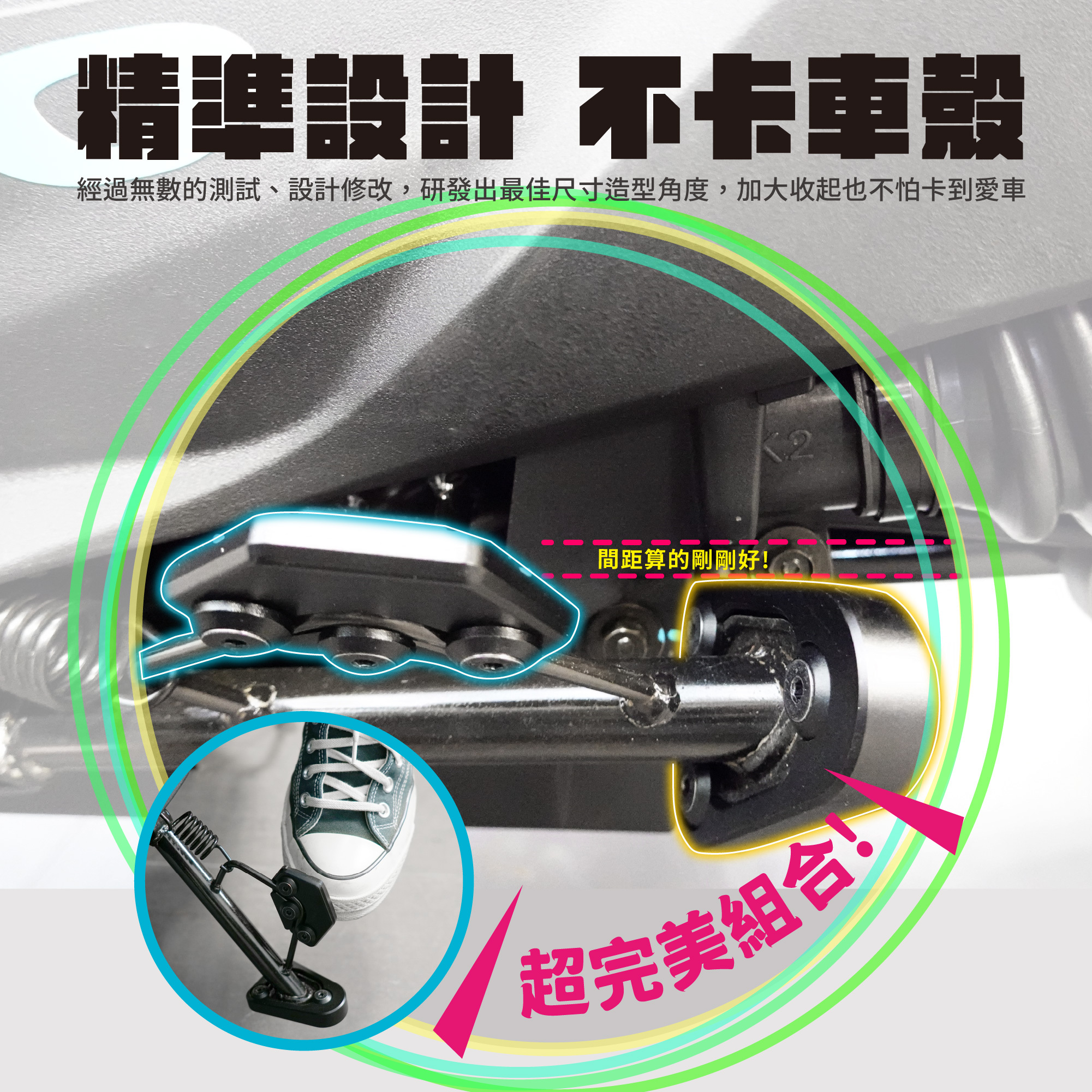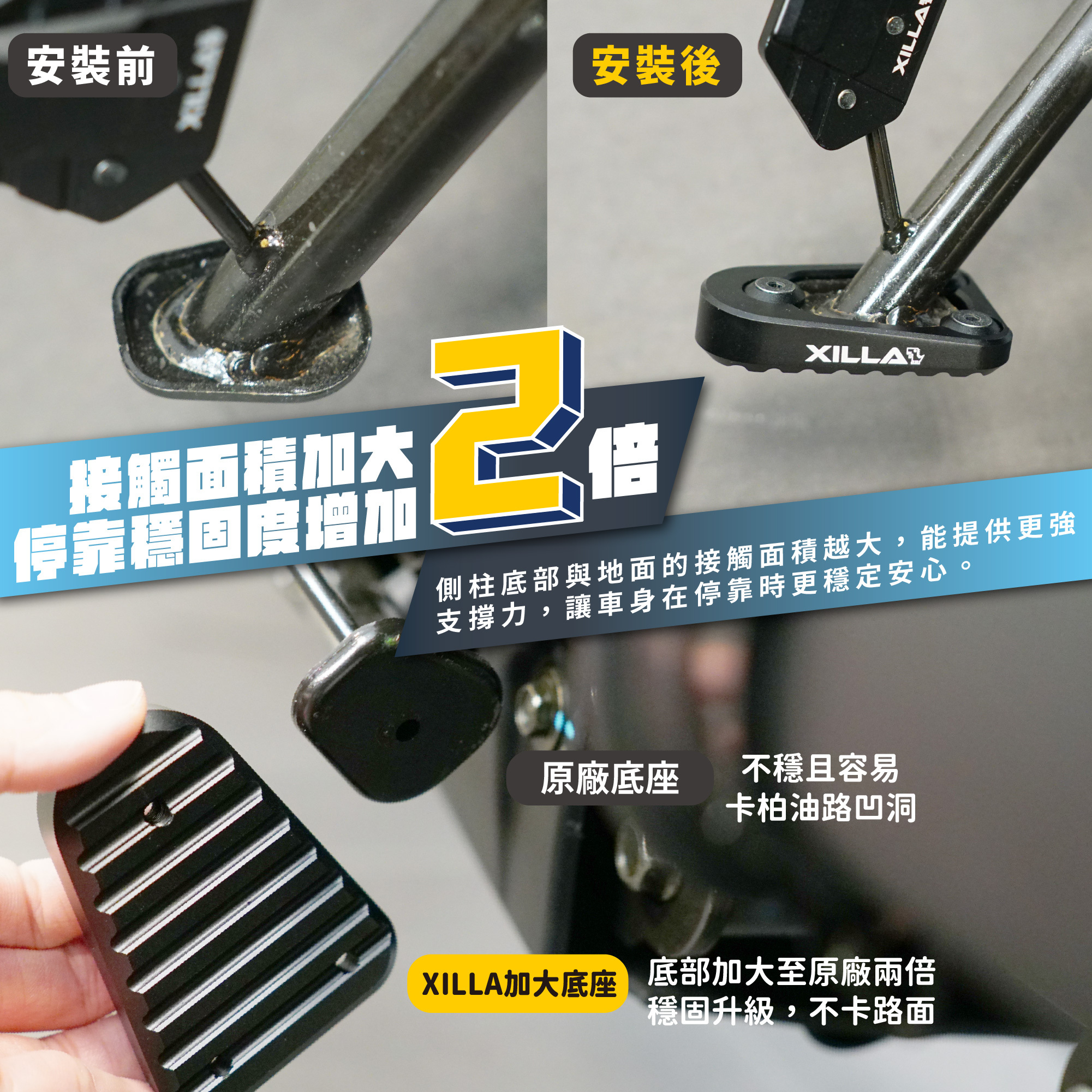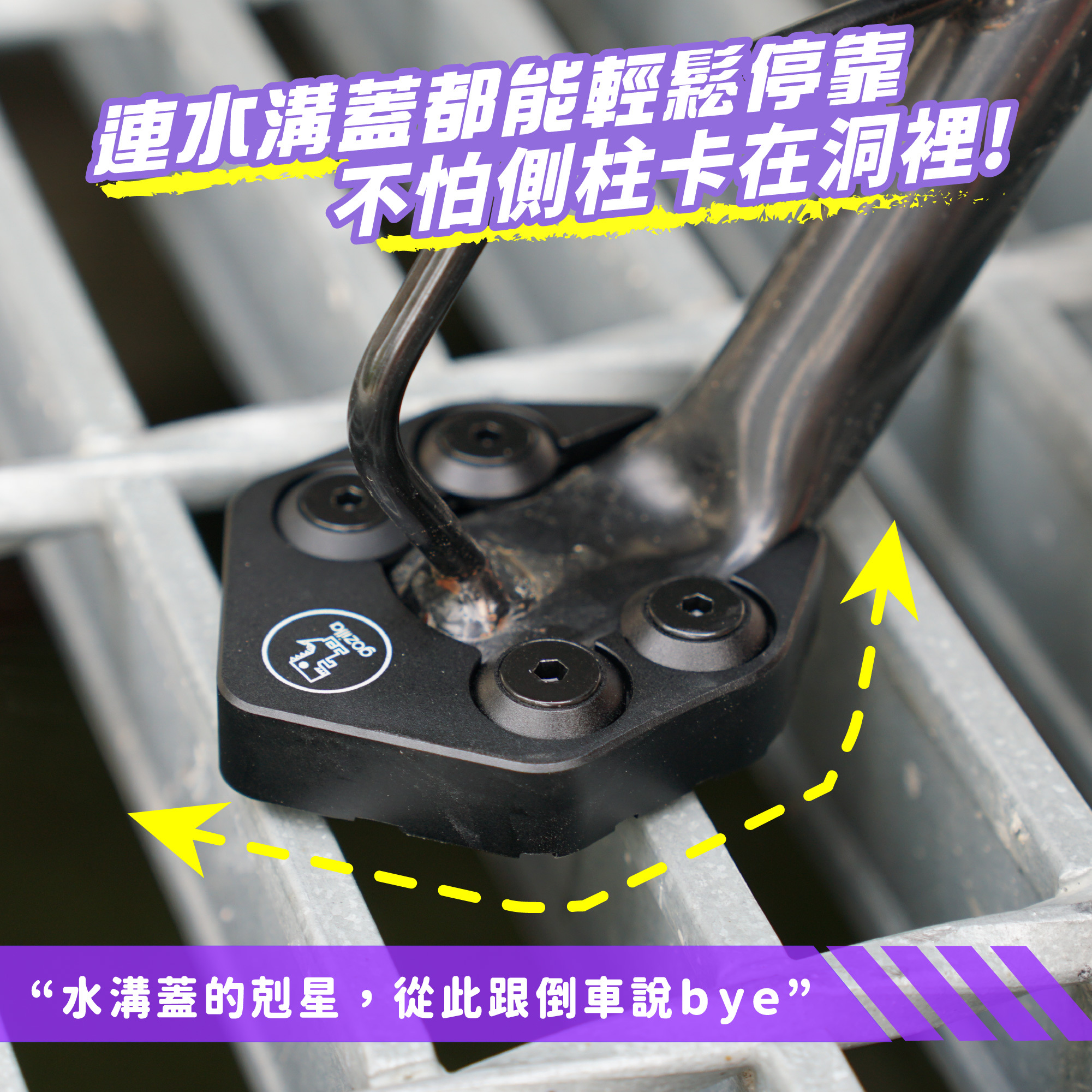PGO ISAVR 威力 125 的鋁合金側柱加大底座/踢片,可有效提升停車時的穩定度,改善原廠側柱接觸面積過小、容易在軟地面下陷的問題。採用高強度鋁合金 CNC 精準切削製成,具備輕量、耐用、不易變形的特性。加大支撐面積後,能在柏油路、磁磚或不平整地面提供更牢固的支撐力,降低車輛傾倒風險。外觀設計俐落有型,可提升車身質感,是實用性與美觀兼具的升級小物。安裝方式簡單,固定鎖點準確,適合作為日常停車安全的強化配件。