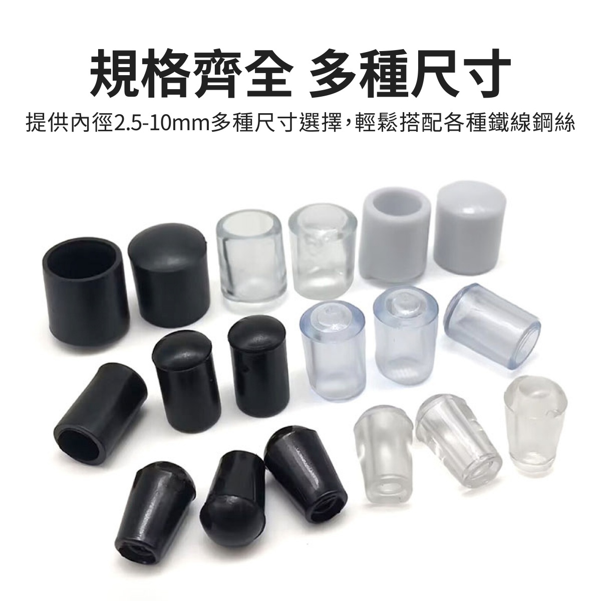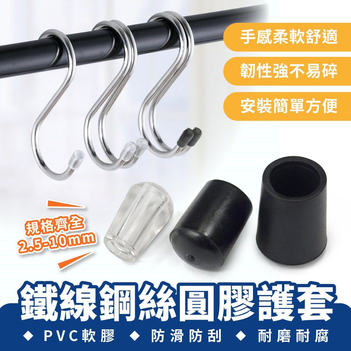 鐵線鋼絲圓膠護套,採用PVC軟膠材質製成,柔韌耐用、不易碎裂,有效保護鋼絲、鐵線、掛勾或衣架端頭,避免刮傷物品或造成損壞。安裝方式簡單,只需一按即可固定,輕鬆方便。產品提供黑色與透明兩種顏色選擇,並備有2.5mm至10mm多種內徑尺寸,滿足不同線材與用途需求。不論是家居、辦公室還是工業應用,都能提供可靠的保護與整齊收納,是您防滑、防刮的最佳解決方案。