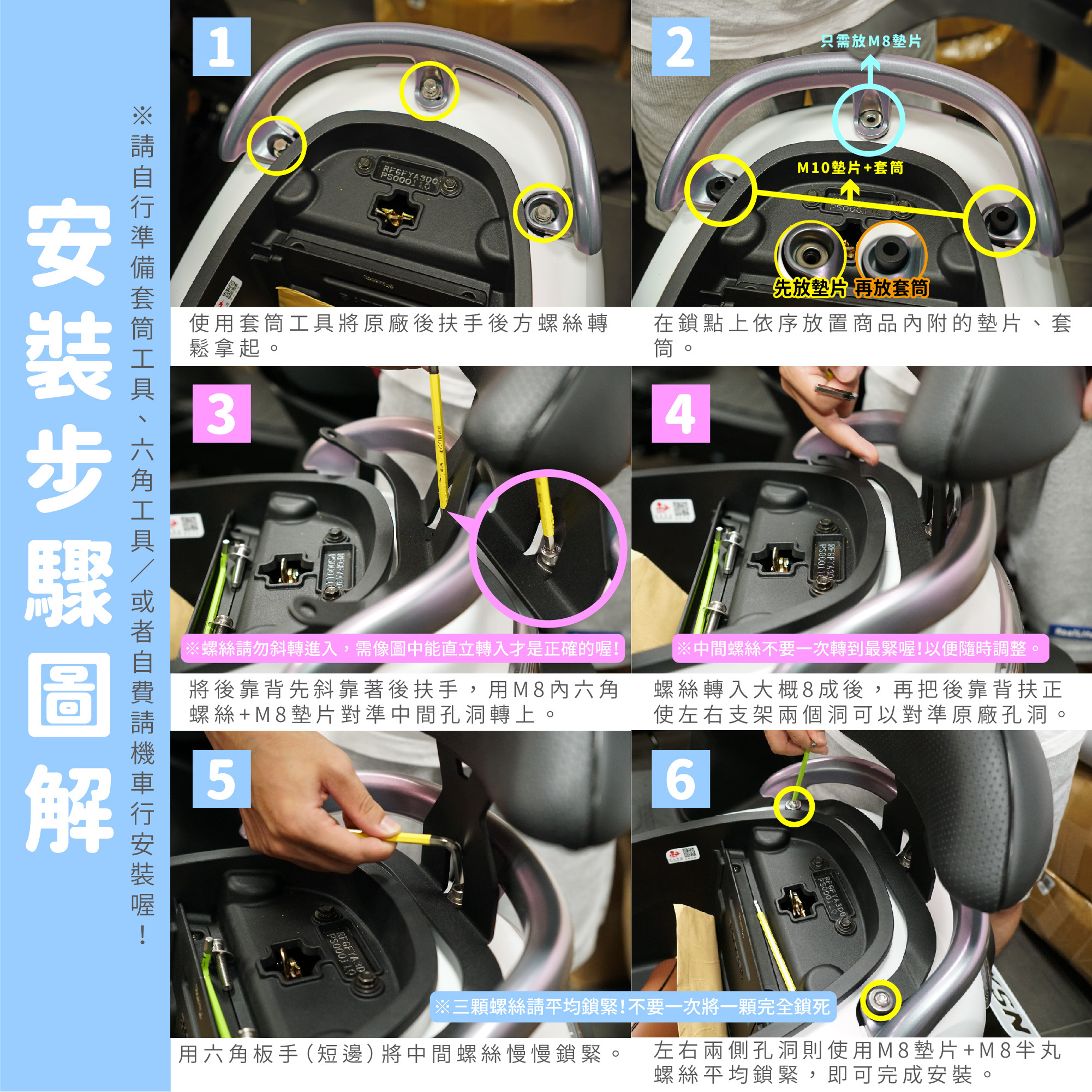 🌟此頁面為KYMCO RCS MOTO 150專用後靠背,可配合原廠後扶手的角度/原廠坐墊安裝,若您的後扶手/坐墊有自行改裝,請先詢問小編是否能安裝再下單購買喔!