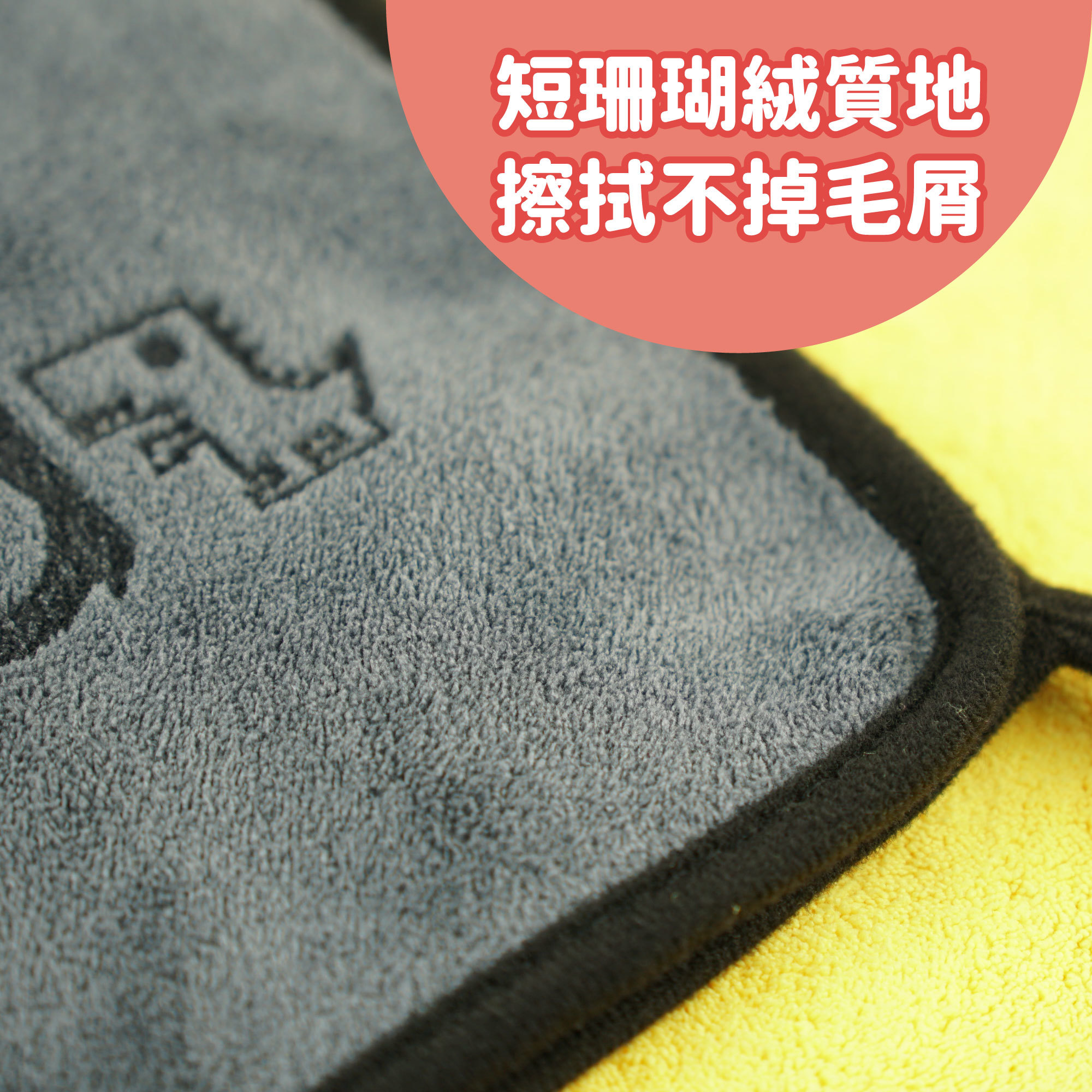 黑黃雙面珊瑚絨擦車巾是一款高效能、超柔軟的清潔工具,專為汽車清潔設計,能輕鬆去除車輛表面的灰塵、污垢、油漬和水漬。它採用了雙面設計,一面為黑色短毛珊瑚絨,另一面為黃色長毛珊瑚絨,兩種不同纖維長度和材質,分別適應不同的清潔需求,能更有效地吸附灰塵與污垢,同時保護車漆不被刮傷。