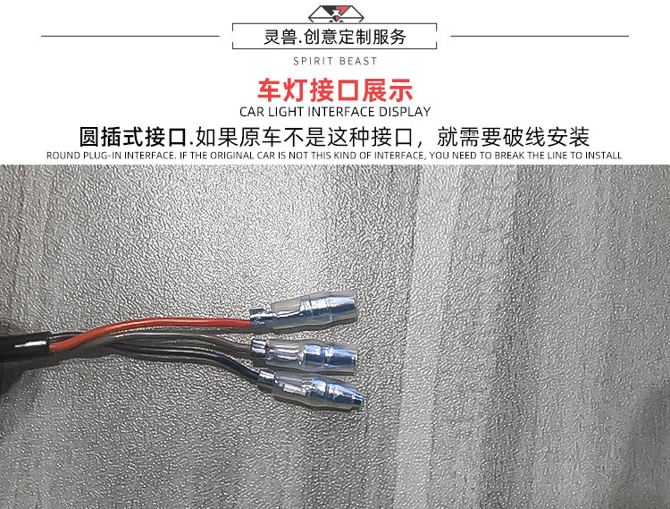 接線方法:紅線警示燈正極,棕線日行燈正極,黑線負極(警示燈優先),線長49CM