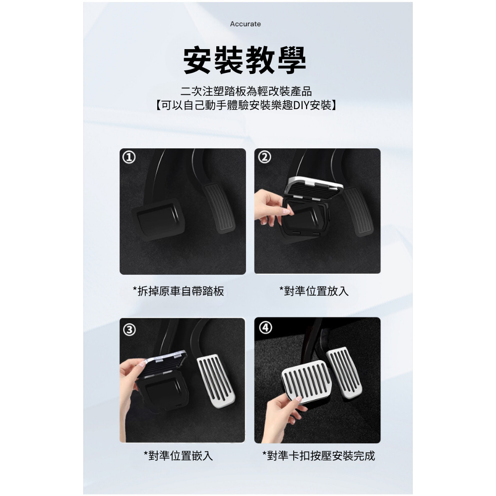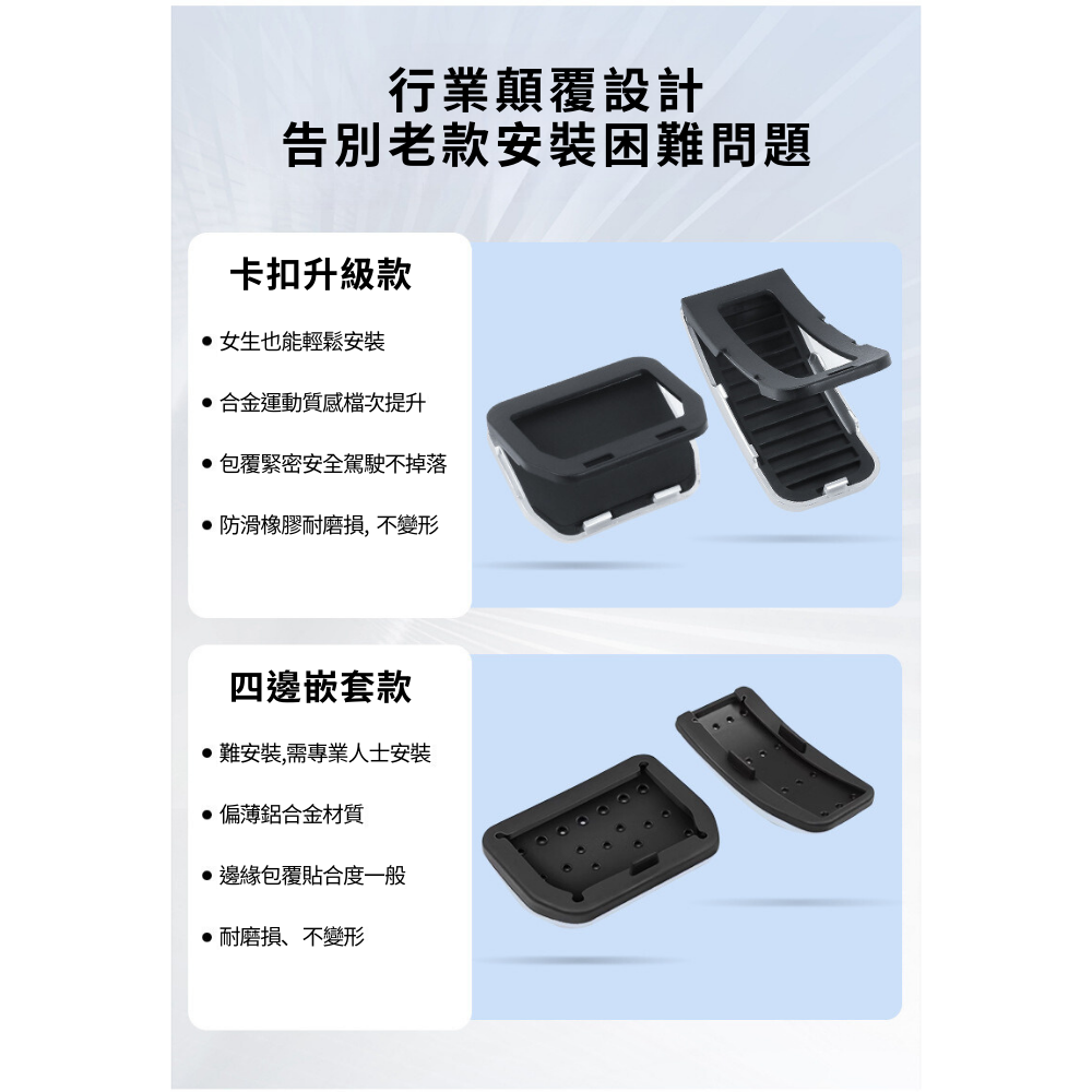 卡扣式油門剎車裝飾踏板,專為 Tesla Model 3/Y 設計,簡單安裝,女生也能輕鬆操作,無需額外工具。合金材質搭配運動風格,提升車內檔次與質感。精確設計的卡扣式固定方式,確保踏板牢牢包覆緊密,安全駕駛過程中不會掉落。防滑橡膠表面,提供穩定的踩踏感覺,耐磨損不易變形,即便在長時間使用後仍能保持良好狀態。為愛車增添運動氣息的同時,還能提高行車安全。