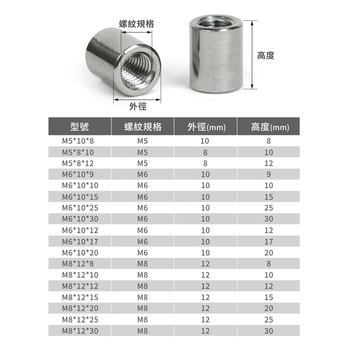 增高連接圓柱螺母,採用高硬度304不鏽鋼製成,耐腐蝕、抗磨損,使用壽命長。螺紋清晰深邃,鎖固更牢靠,確保連接穩定不鬆動。表面光滑平整,不易刮手,操作安全便利。無論是機械設備、電子零件還是家具裝配,都能提供可靠連接支持,是專業人士與 DIY 愛好者的理想選擇。高品質材質與精密製作,讓每一次組裝都更順暢、耐用。