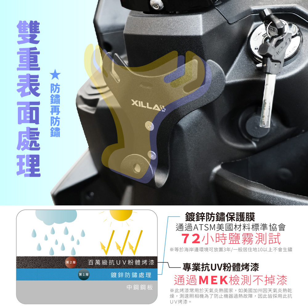 👍通過72小時美國材料標準協會制定鹽霧測試,(等同於機車停放在海岸邊3年不動也不會生鏽,一般居住地方10年以上)