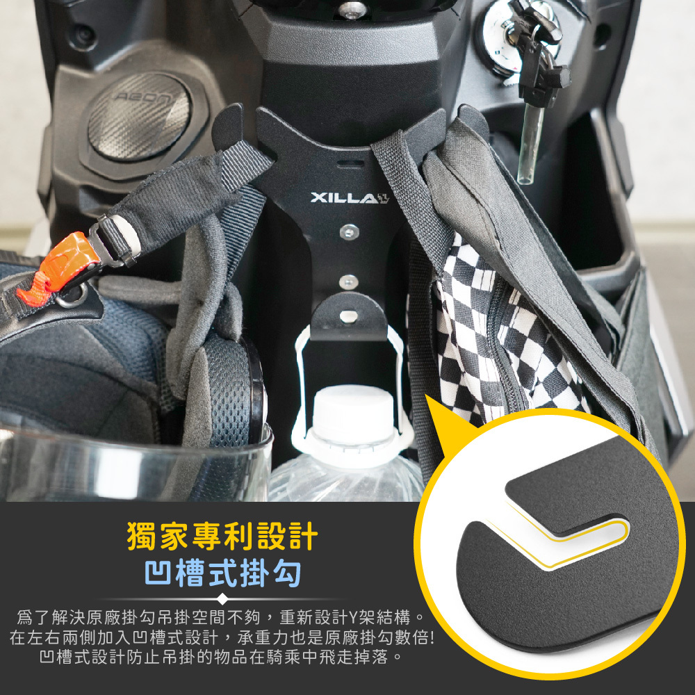 👍創新凹槽式掛勾設計,讓袋子滑入掛勾內,不怕遇坑洞袋子噴飛