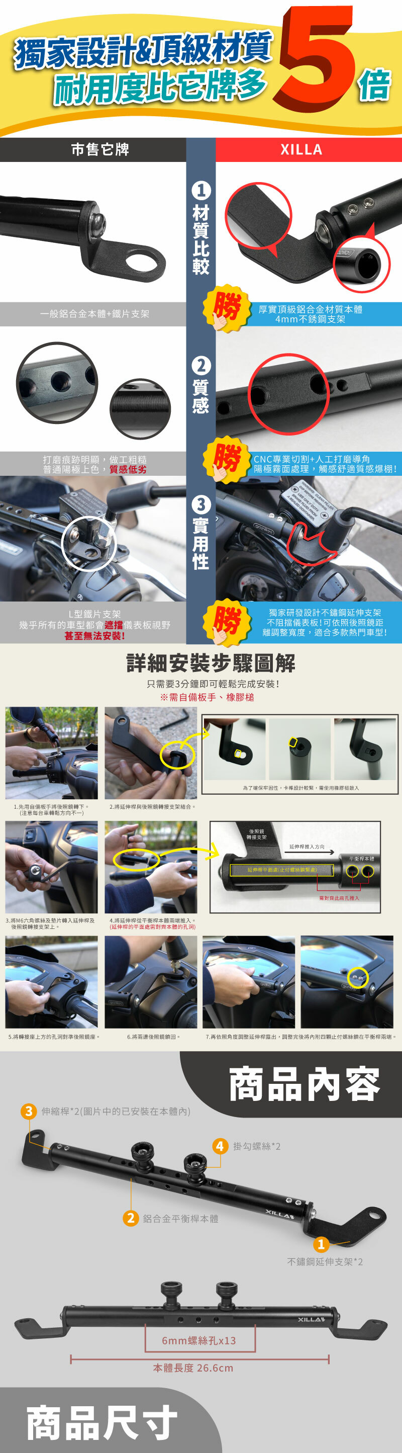 此平橫桿採用輕量化鋁合金材質,堅固耐用且具有良好的抗腐蝕性,能有效提升車輛的外觀及穩定性。設計簡單且實用,提供騎士更佳的載物空間或支援其他附件,並能改善車輛的操控性和安全性。安裝簡便,適合日常使用和長途騎行,提升整體騎乘體驗。