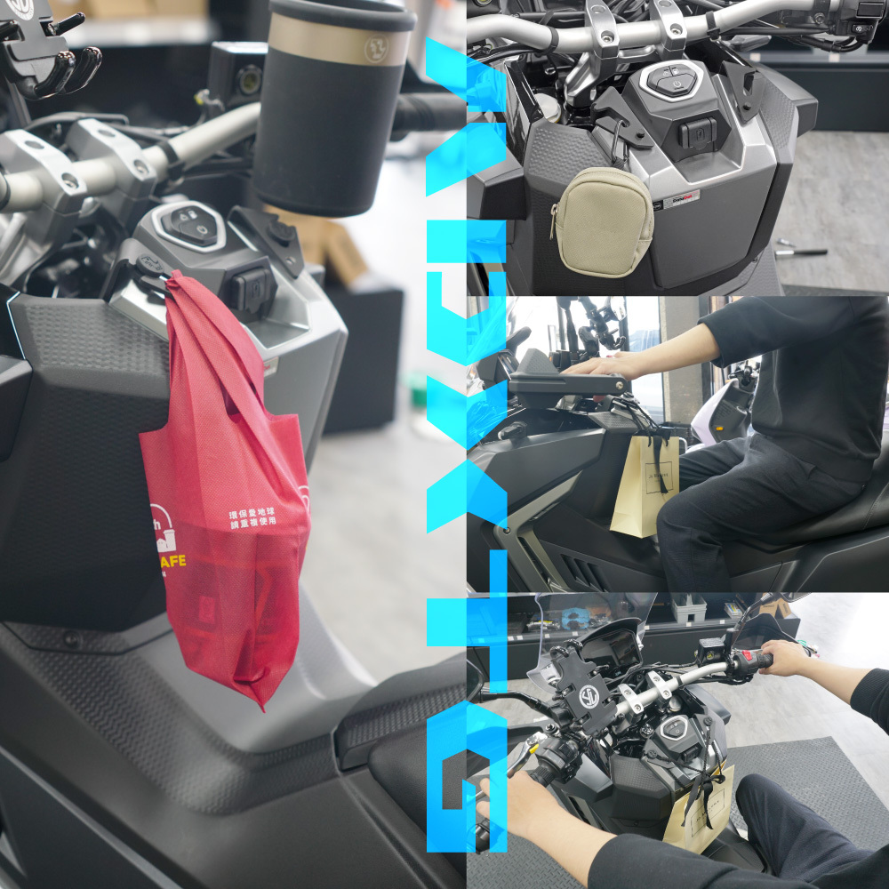 ⚠️建議承掛重量在1-3kg內,物品大小以雙腳擺放位置舒適,並以不影響行車安全為優先考量。