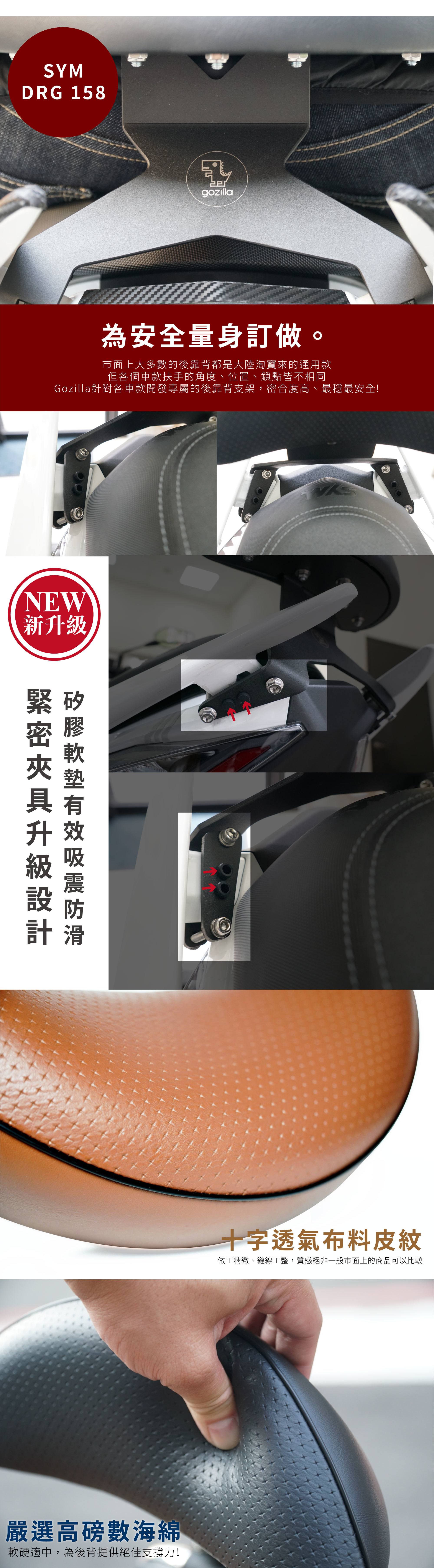 XILLA機車後靠背專為提升乘客舒適性與安全性而設計。其堅固的結構提供穩定的支撐,減少長途騎行時的疲勞感。採用高品質材料,結合人體工學設計,能有效減少背部壓力,並提供更好的騎乘體驗。簡單安裝,兼具美觀與功能,適用於多種機車型號,讓騎行過程更加舒適與安全。
