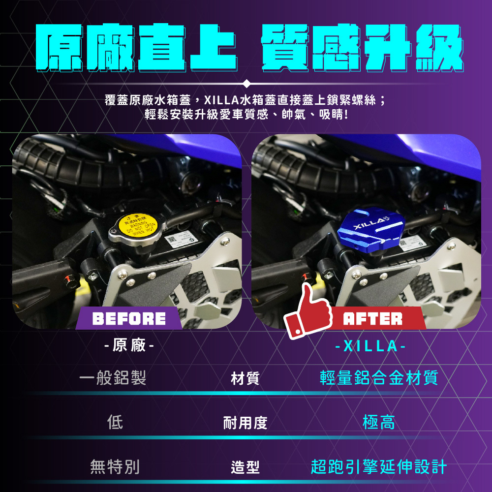 XILLA全新推出鋁合金注水飾蓋,專為水箱蓋設計;結合經典超跑引擎設計與質感帥氣,讓您的騎乘體驗更上一層樓!