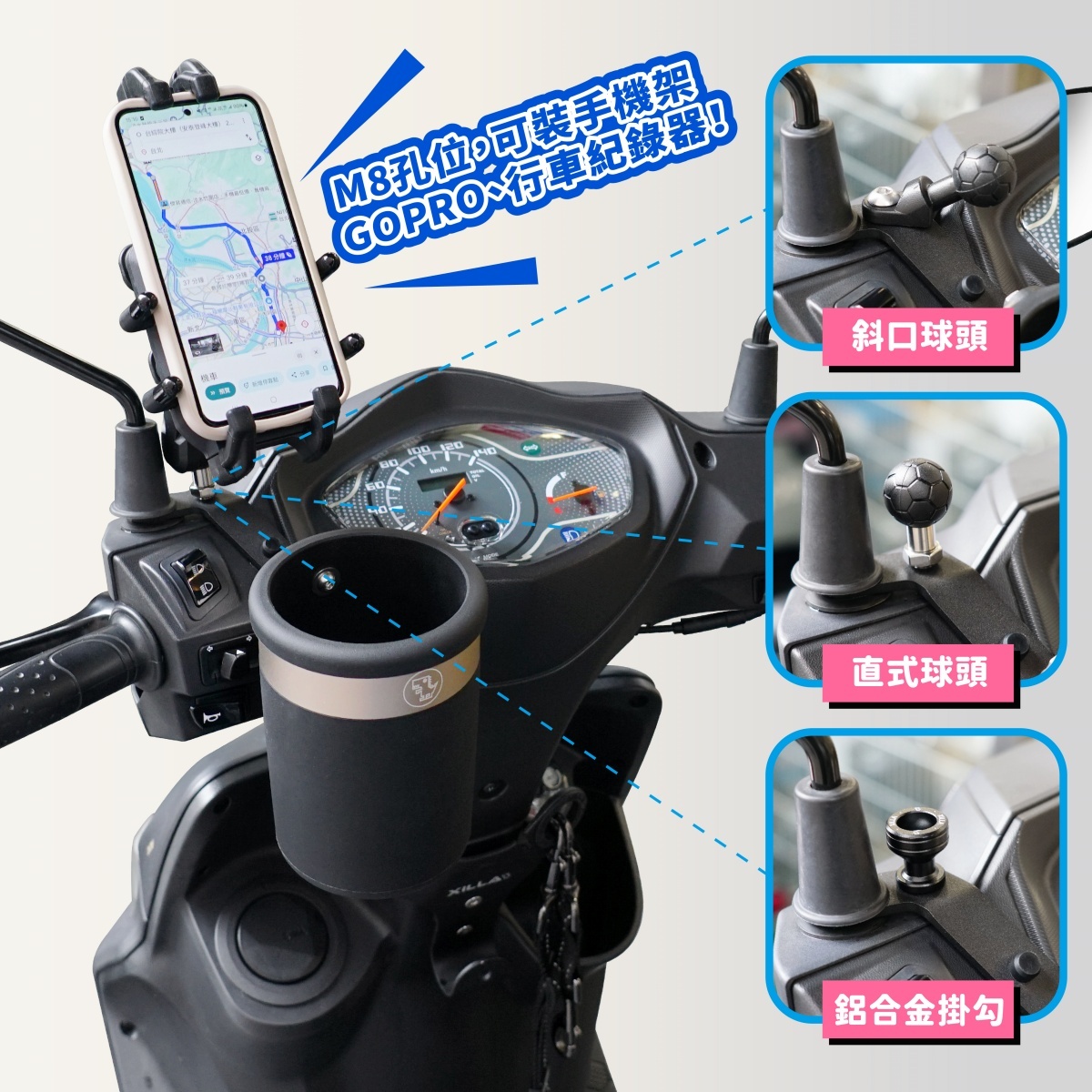 🏆多功能M8孔位,可安裝手機支架、GOPRO、鋁合金掛勾~