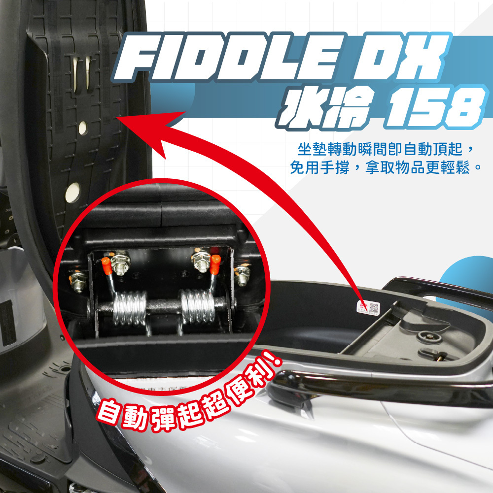 專為 SYM FIDDLE DX 水冷 158 設計的坐墊自動彈起彈簧,提升開座墊便利性,開啟後可自動彈起,省力又安全。採用強力彈簧結構,搭配防鏽處理,耐用不變形,雨天照樣順暢使用,是實用又貼心的升級小物!