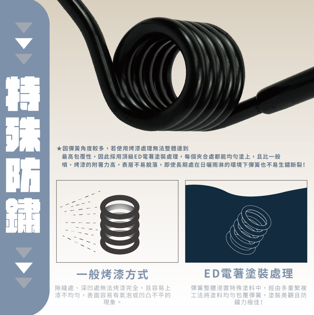 ⚠️注意:彈簧為消耗品,會依使用方式,逐漸疲乏至45度角,皆為正常狀態!