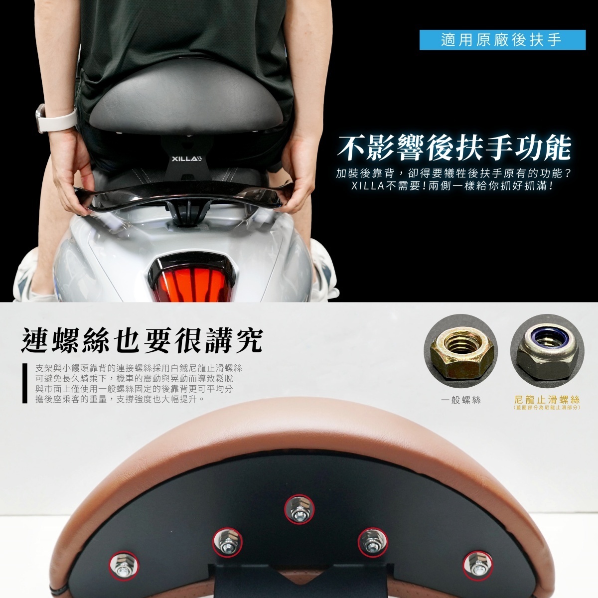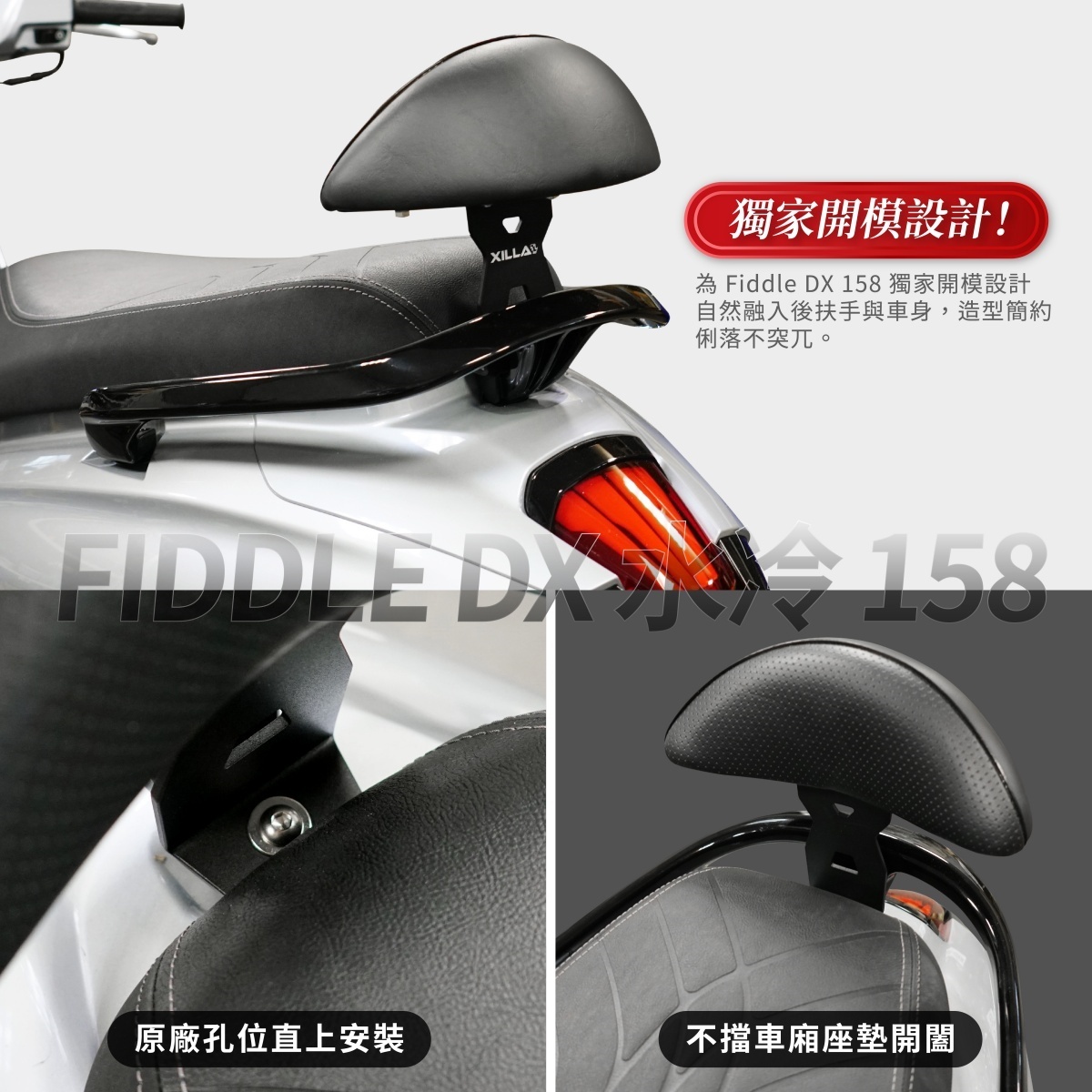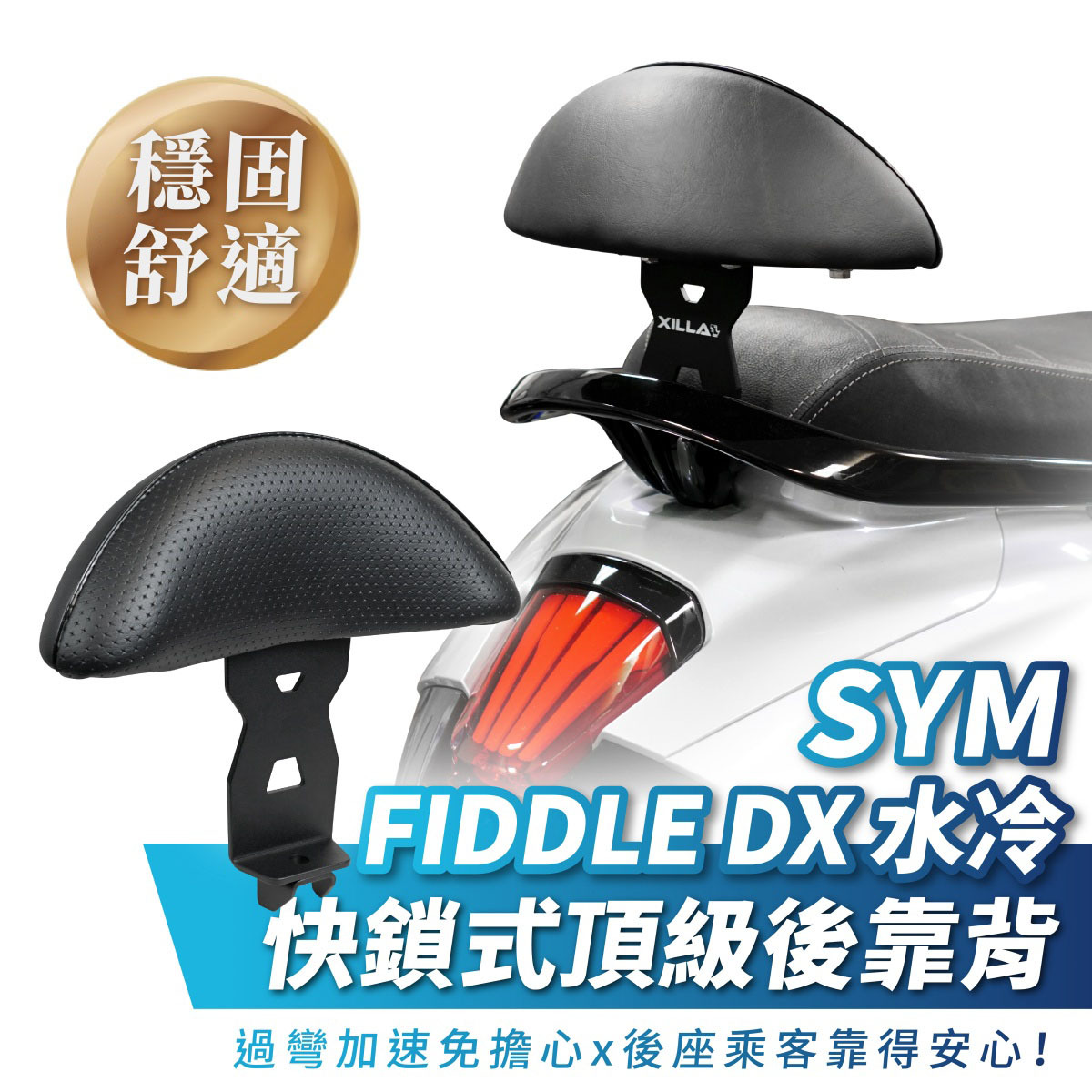 XILLA SYM Fiddle DX 水冷 158後靠背推薦!MIT台灣製造,優質小饅頭泡棉、耐用鋼板與雙層防鏽處理,使用壽命長達10年以上。完美密合原廠後扶手與坐墊,支撐力加倍,安裝簡便,給後座滿滿安全感。支架、靠墊精密設計,穩固耐用,讓您的騎乘更舒適安心!