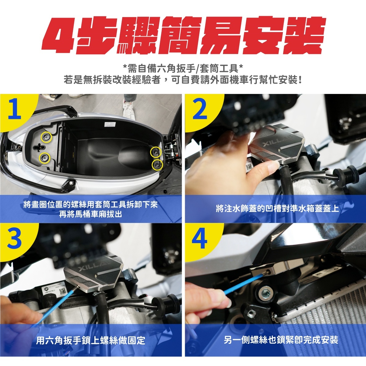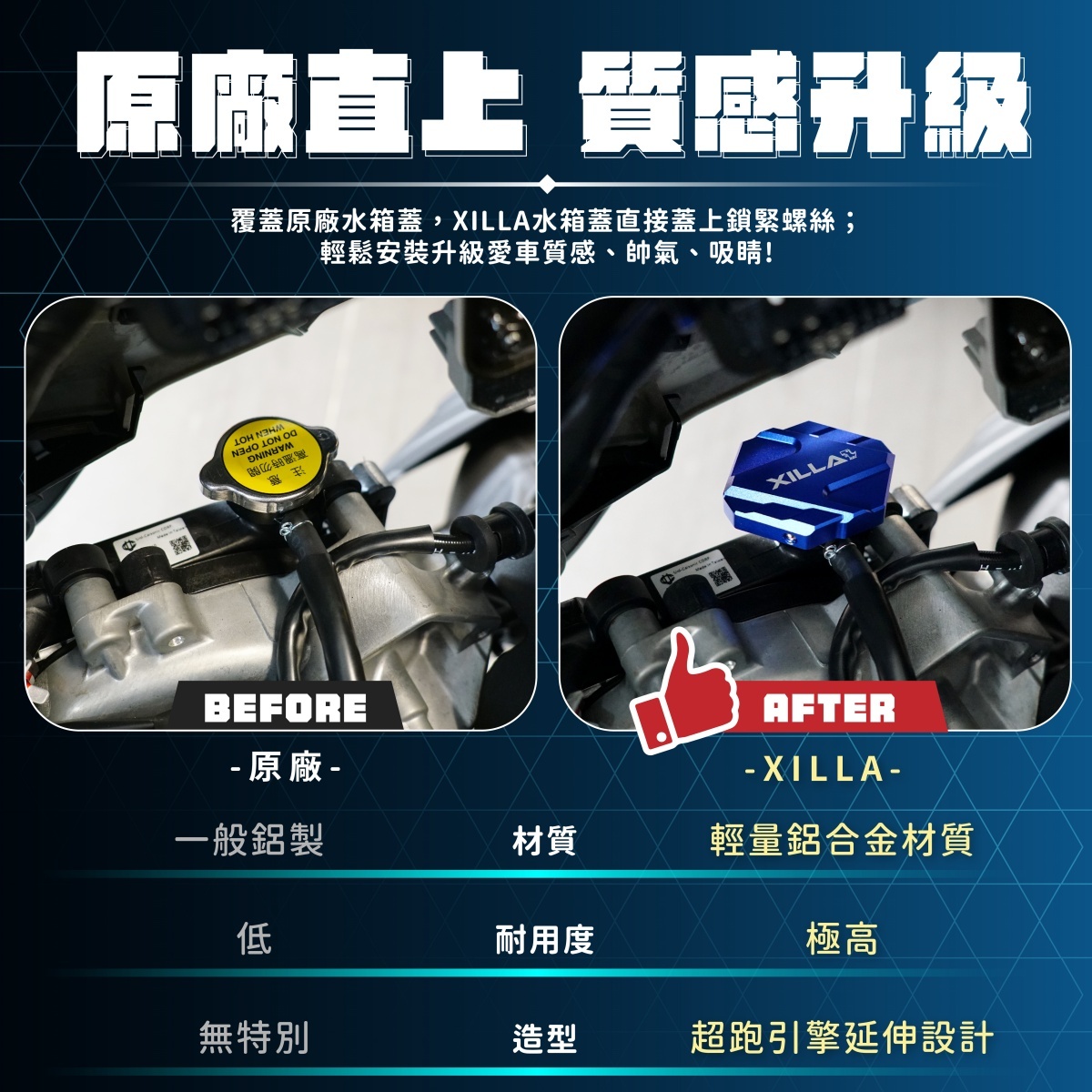 XILLA全新推出鋁合金注水飾蓋,專為水箱蓋設計;結合經典超跑引擎設計與質感帥氣,讓您的騎乘體驗更上一層樓!