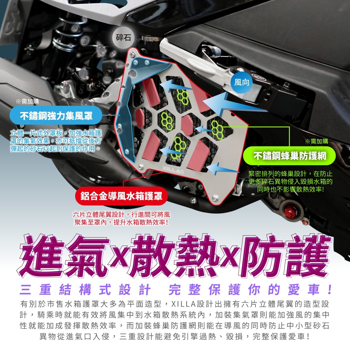 選擇XILLA 進氣導風散熱水箱防護罩,不僅提升愛車性能,更為您的騎乘旅程增添安全與品味!立即入手,讓您的SYM車款煥然一新!