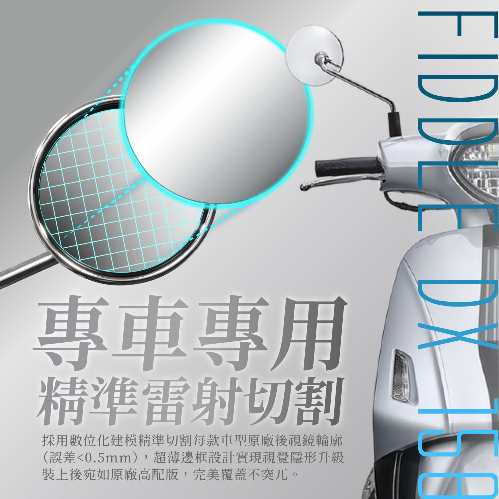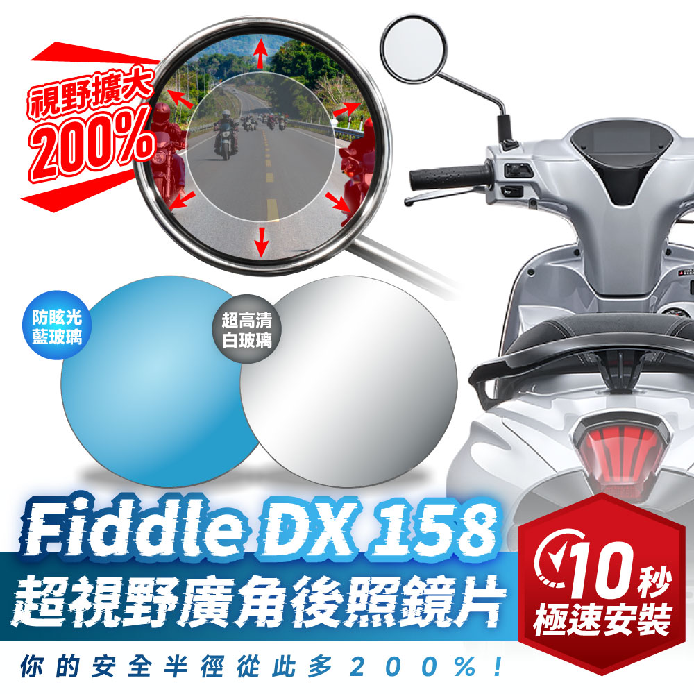 專為 SYM FIDDLE DX 水冷 158 設計!本廣角後照鏡貼片採用真玻璃製成,畫面清晰不變形,視野擴大 200% 有效減少盲區,搭配防眩光鍍膜,白天不刺眼、夜間不怕遠光燈干擾。奈米膠強力貼合、無痕不傷鏡面,耐熱耐冷不脫落,安裝快速免工具,是SYM MMBCU 158車主必備的行車安全升級配件!