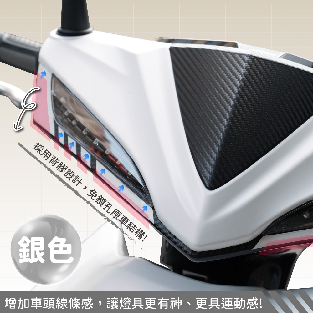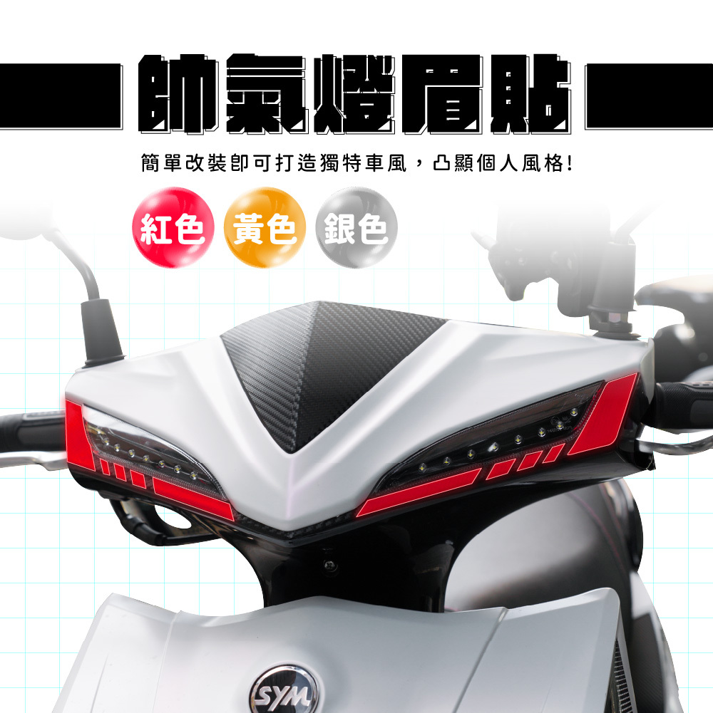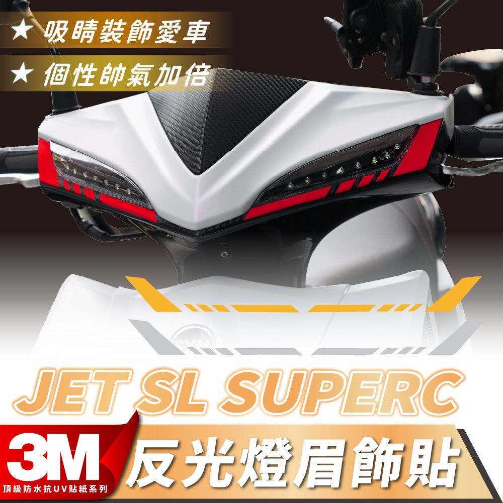 三陽 SYM JET SL SUPERC 專用反光燈眉飾貼,專為車款量身打造,高度貼合燈眉線條。選用高亮反光材質,夜間行駛更顯安全,同時增添帥氣運動感。安裝簡單,背膠設計撕貼即用,不傷車漆,耐候防水,長效耐用,是機車外觀升級與安全兼具的改裝小物。