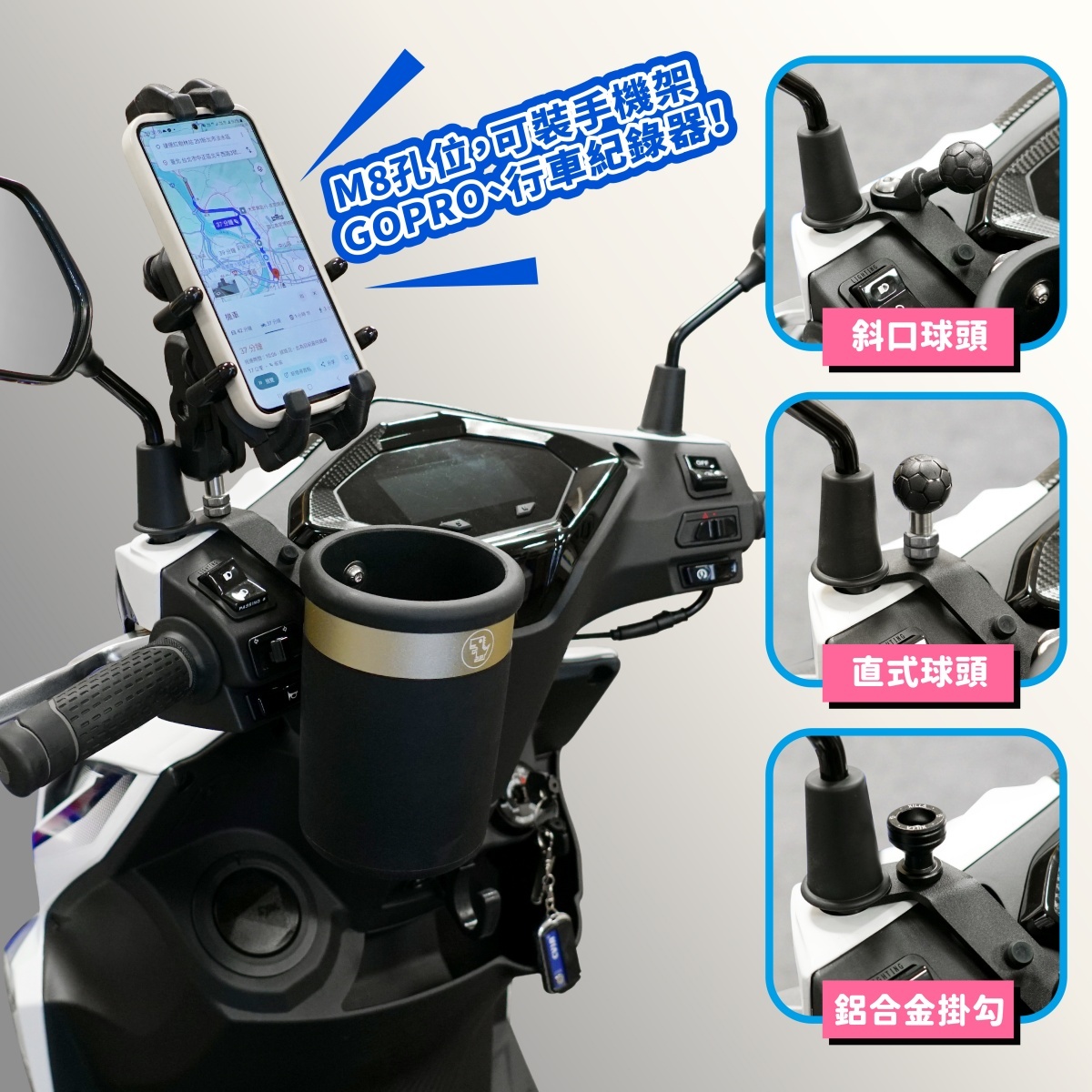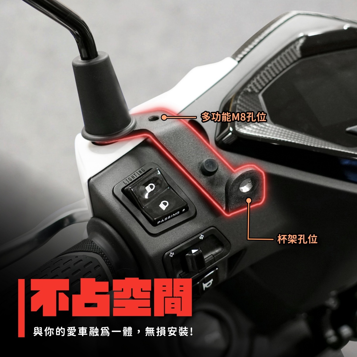 🏆多功能M8孔位,可安裝手機支架、GOPRO、鋁合金掛勾~