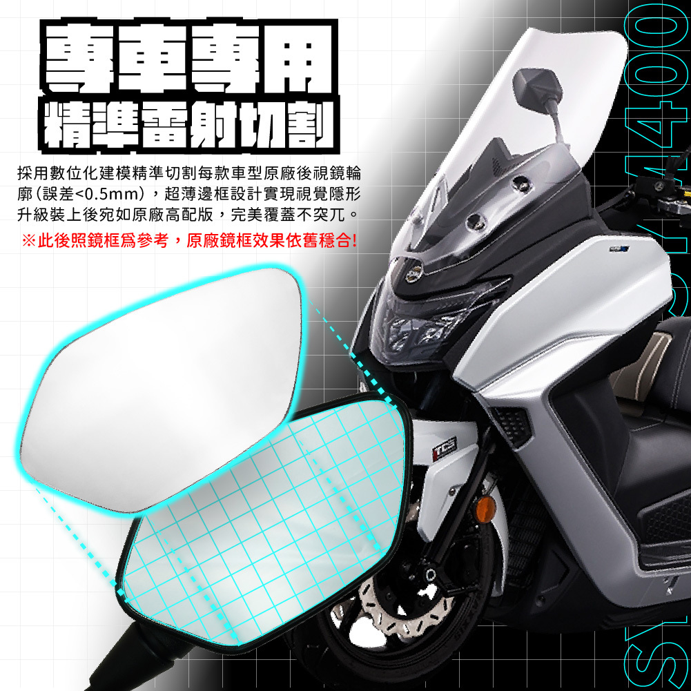 專為SYM MAXSYM 400設計的超視野廣角後照鏡,鏡面加大並具備防眩功能,有效擴大後方視野範圍,減少行車盲區。鏡面角度可自由調整,搭配穩固防震支架,提升騎乘安全與穩定性。安裝簡單快速,是通勤與長途騎行的理想升級配件。
