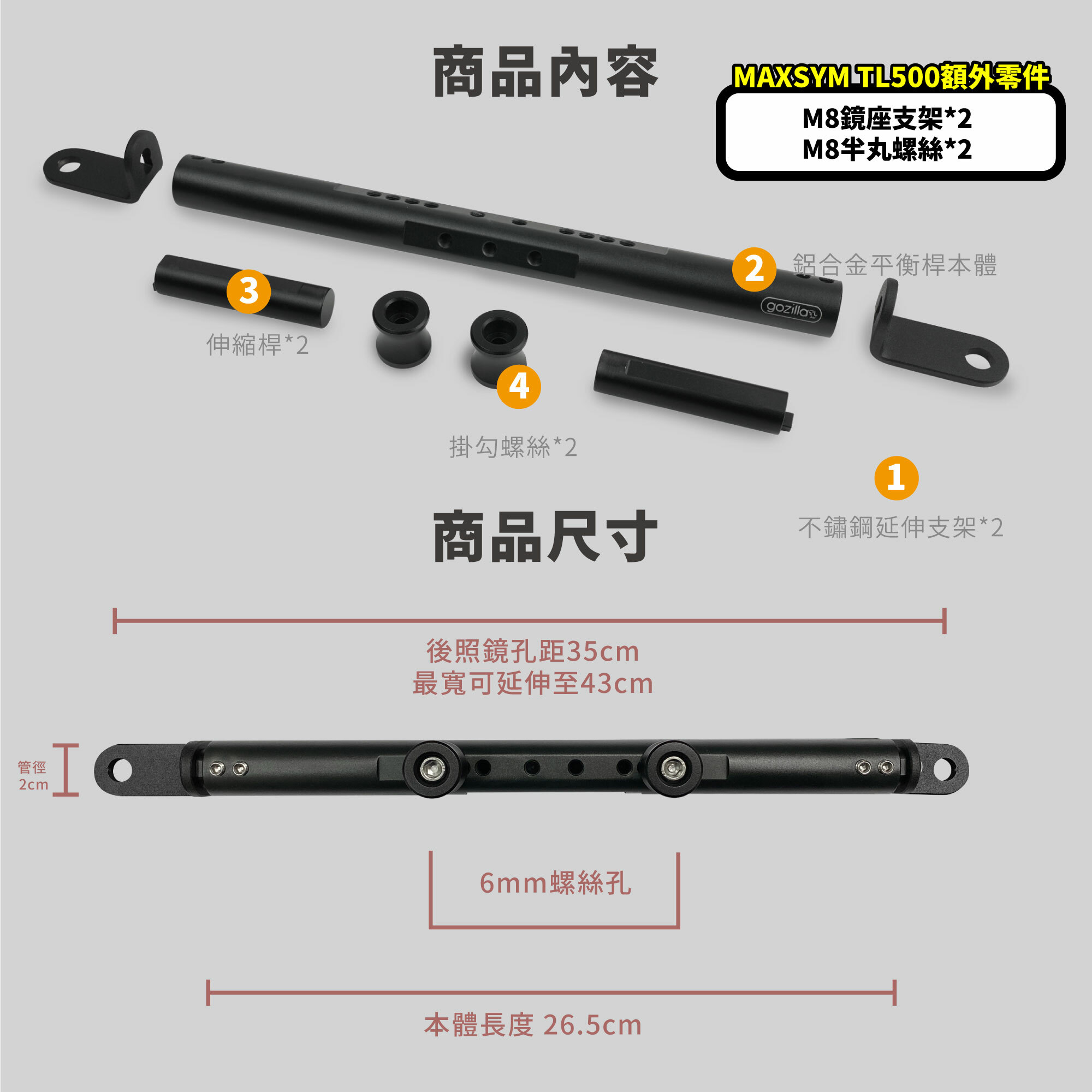此平橫桿採用輕量化鋁合金材質,堅固耐用且具有良好的抗腐蝕性,能有效提升車輛的外觀及穩定性。設計簡單且實用,提供騎士更佳的載物空間或支援其他附件,並能改善車輛的操控性和安全性。安裝簡便,適合日常使用和長途騎行,提升整體騎乘體驗。