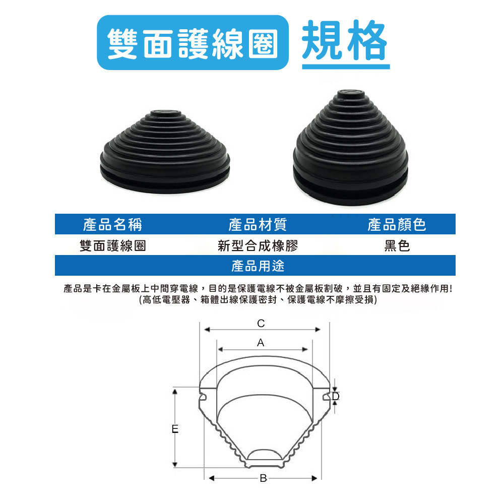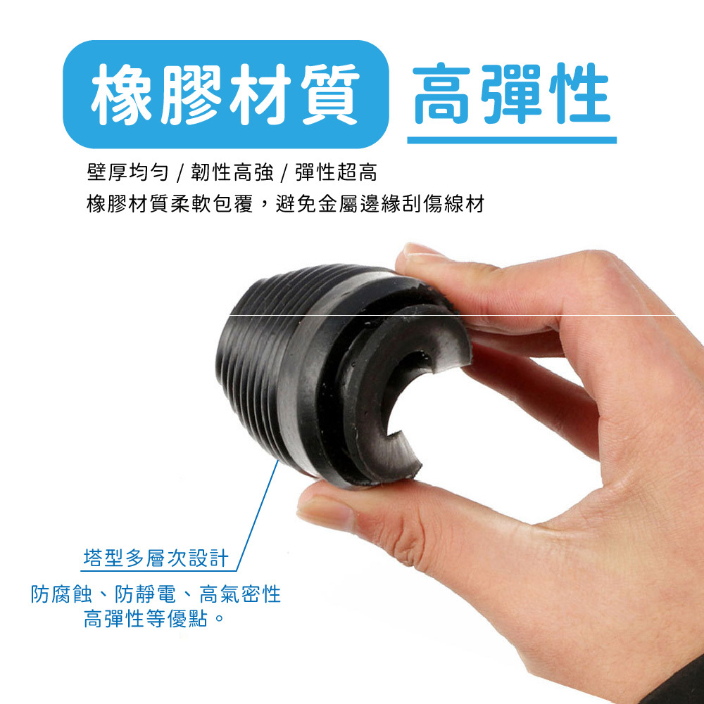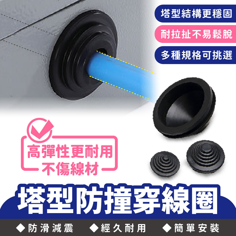 💪塔型雙面橡膠護線圈具有良好的彈性與耐磨性,可有效保護電線、管線通過金屬孔洞時不被刮傷,並降低震動帶來的碰撞異音。塔型結構加強固定效果,不易脫落,適用於汽機車、機械設備、電器產品、工具箱等多種場景。安裝簡單,只需卡入孔洞即可使用,是線材保護的必備小配件。