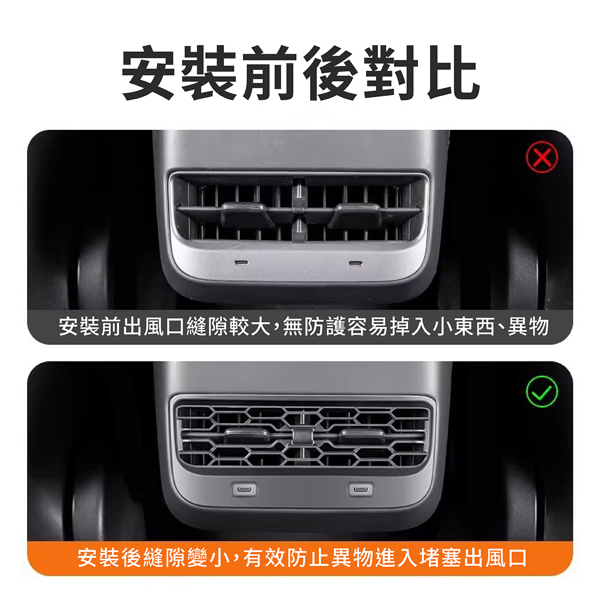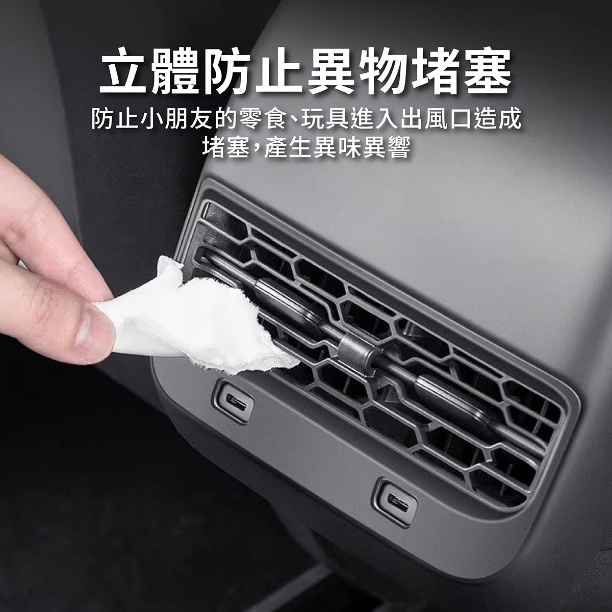 特斯拉後座出風口保護罩專為Tesla Model Y / Model 3設計,原車掃描開模,完美貼合內裝,不影響原車功能與充電孔使用。能有效防止異物、灰塵進入,避免堵塞影響空調系統。採用ABS材質,耐冷熱風,具防阻燃、防老化特性,長期使用不變形。安裝簡單,背膠固定設計,快速黏貼即可牢固安裝,穩固不掉落,讓您的愛車更耐用、更整潔。