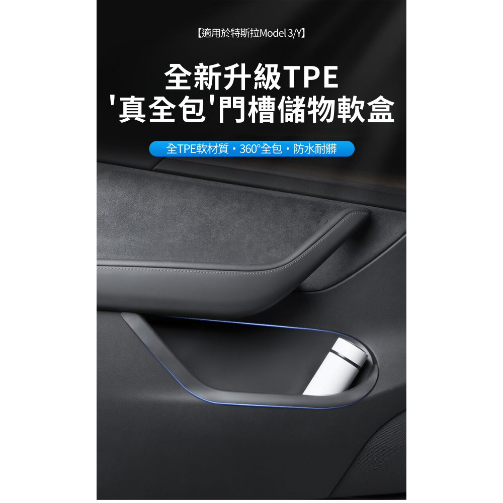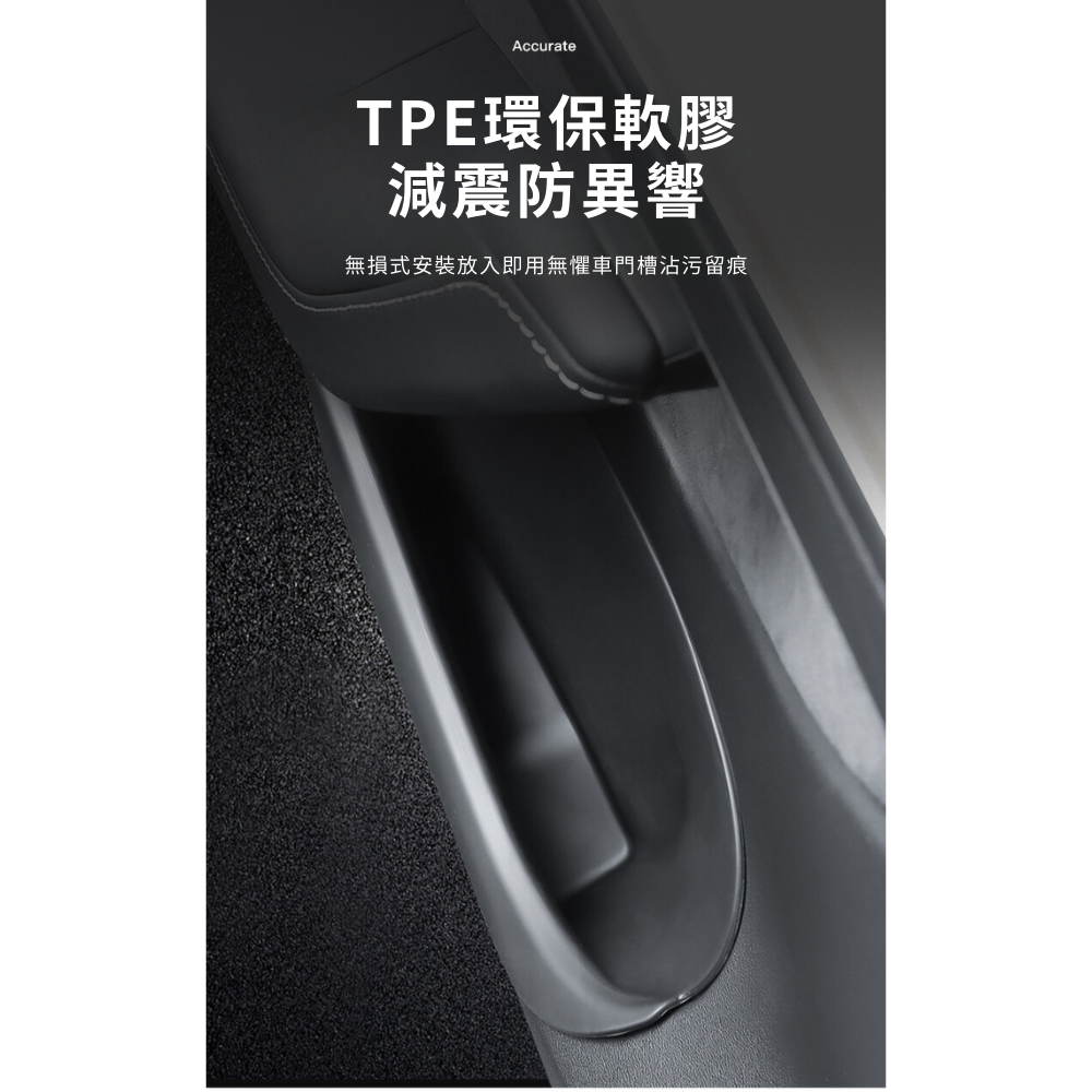 TPE全包款車門儲槽墊,專為Tesla 煥新Model 3/Y設計,實車開模,完美貼合車門弧度,確保穩固安裝。採用高品質TPE材質,具備防水耐髒特性,方便清理,確保車內整潔。嵌入式設計,無損安裝,不影響原車結構,同時具備優秀的減震功能,可有效防止物品晃動產生異響,提升駕乘舒適度。簡單安裝,即刻提升您的Tesla內飾質感與實用性。