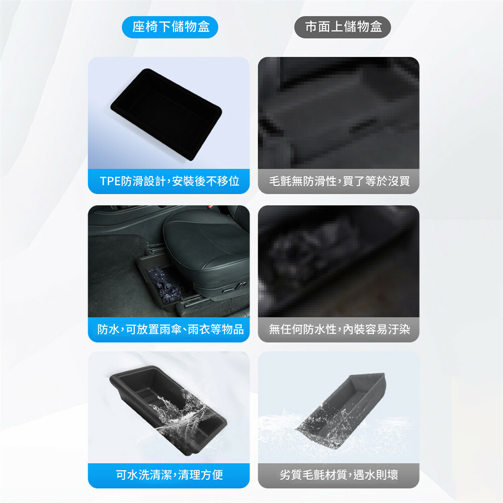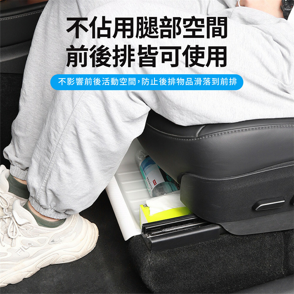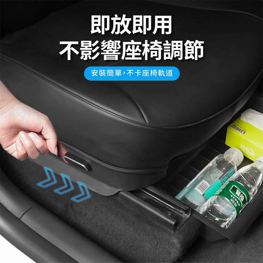 TPE座椅下儲物盒,專為Tesla Model Y設計,完美貼合座椅下方空間,有效防止雜物滾落或滑出,讓車內保持整潔有序。採用防滑TPE材質,耐髒防水,易於清潔,確保長期使用不變形。安裝簡單,無需工具,即插即用,不影響座椅調節功能。巧妙設計不佔用腿部空間,適用於前後座,提供額外隱藏收納空間,讓車內物品擺放更有條理,打造更舒適的駕駛體驗。