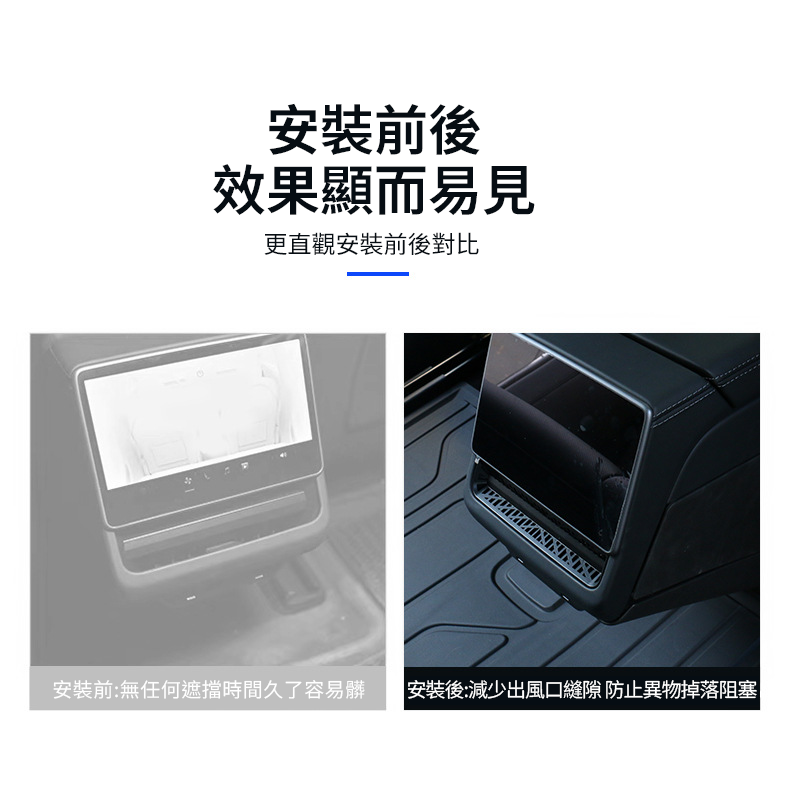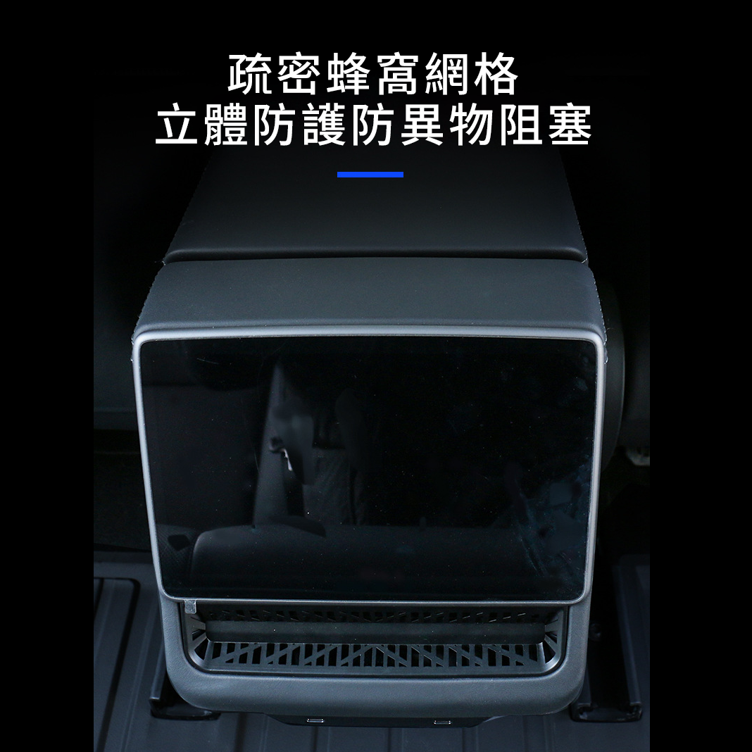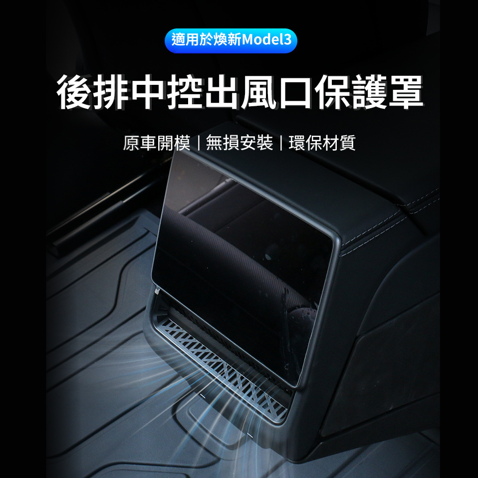 後排中控出風口保護罩,專為Tesla 煥新3設計,實車掃描開模,完美貼合車內出風口區域。有效防止灰塵與異物進入,堵塞空調系統或影響車內空氣流通。採用高品質ABS材質,耐高低溫,保護出風口不受損害。卡扣設計無損安裝,牢固穩定,不會脫落,並且不影響原車功能及充電孔使用,提升車內整體保護性與美觀,是Tesla車主必備的防護升級配件。