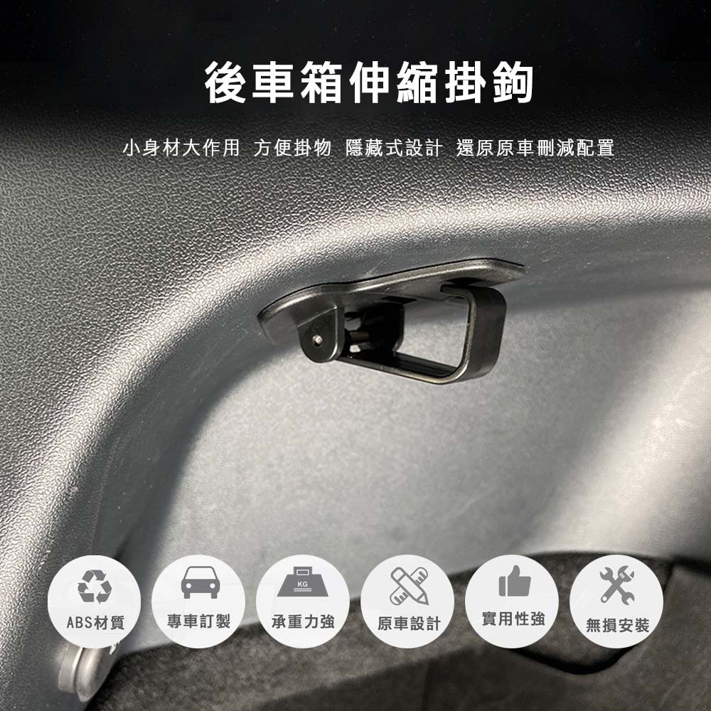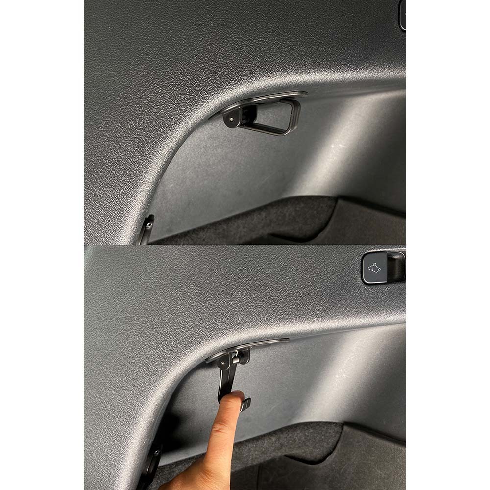後備箱伸縮掛勾,專為 Tesla Model Y 設計,無需破壞車體,原車孔位簡易安裝,穩固不晃動。高強度 ABS 工程塑膠材質,耐磨耐用,能承受日常行車震動與重物懸掛需求。掛勾可伸縮調整,靈活適應不同物品大小,讓後備箱收納更有彈性。可吊掛購物袋、背包、雨傘等物品,避免滾動散落,提升行車便利性。輕量化設計不影響後備箱空間,簡約外觀與 Tesla 內裝完美融合,是 Model Y 車主不可錯過的實用改裝配件。