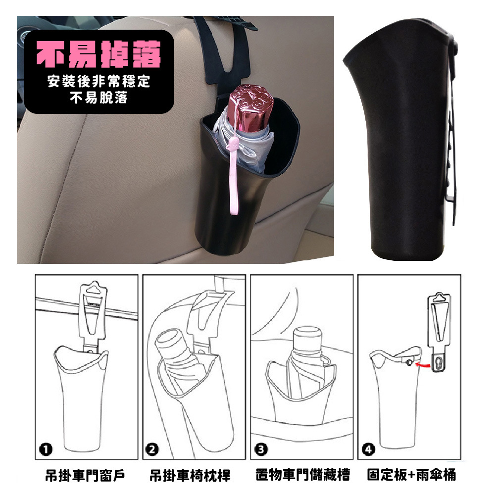 汽車雨傘收納桶,專為車主設計的雨天必備配件,讓您的車內不再潮濕。這款收納桶支持多種吊掛方式,包括車窗側掛、椅桿吊掛或車門收納,方便您在雨天快速放置濕潤的雨傘,保持車內乾爽整潔。採用ABS和PC材質,耐用且防潮,即使是下大雨也能有效防止水滴濺入車內。簡單安裝,輕鬆使用,讓您的車內整潔無憂。