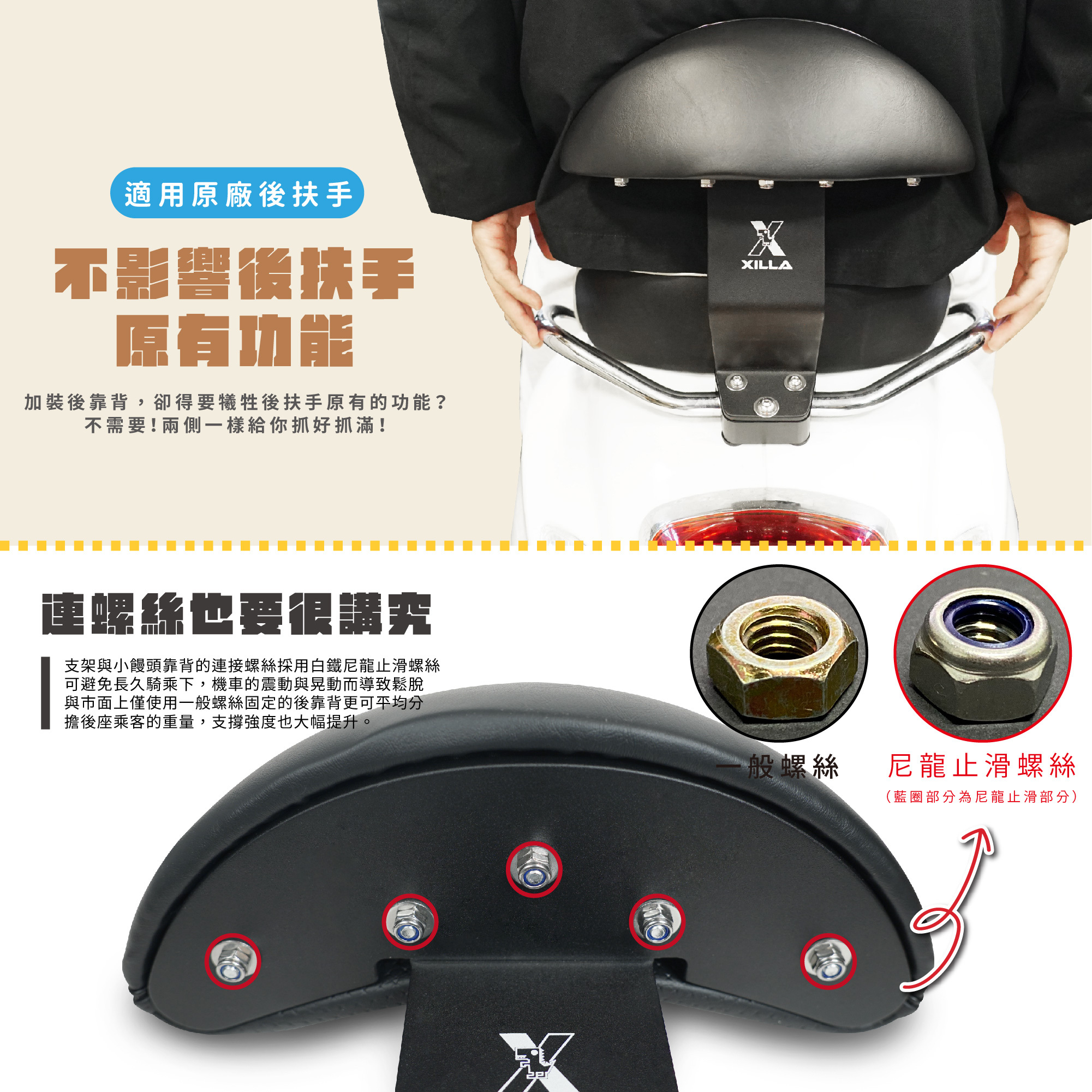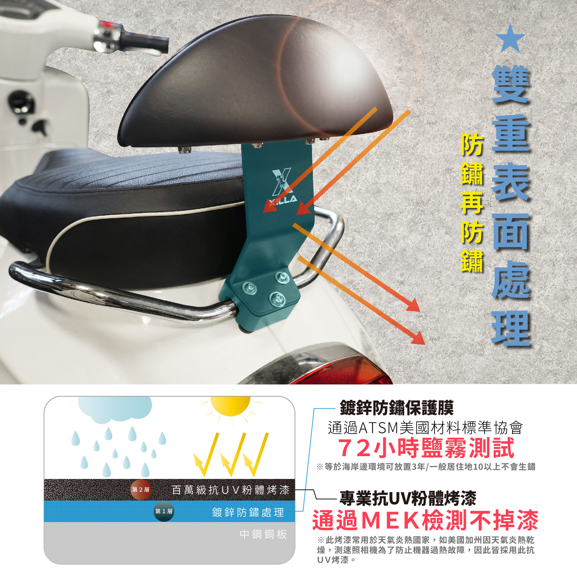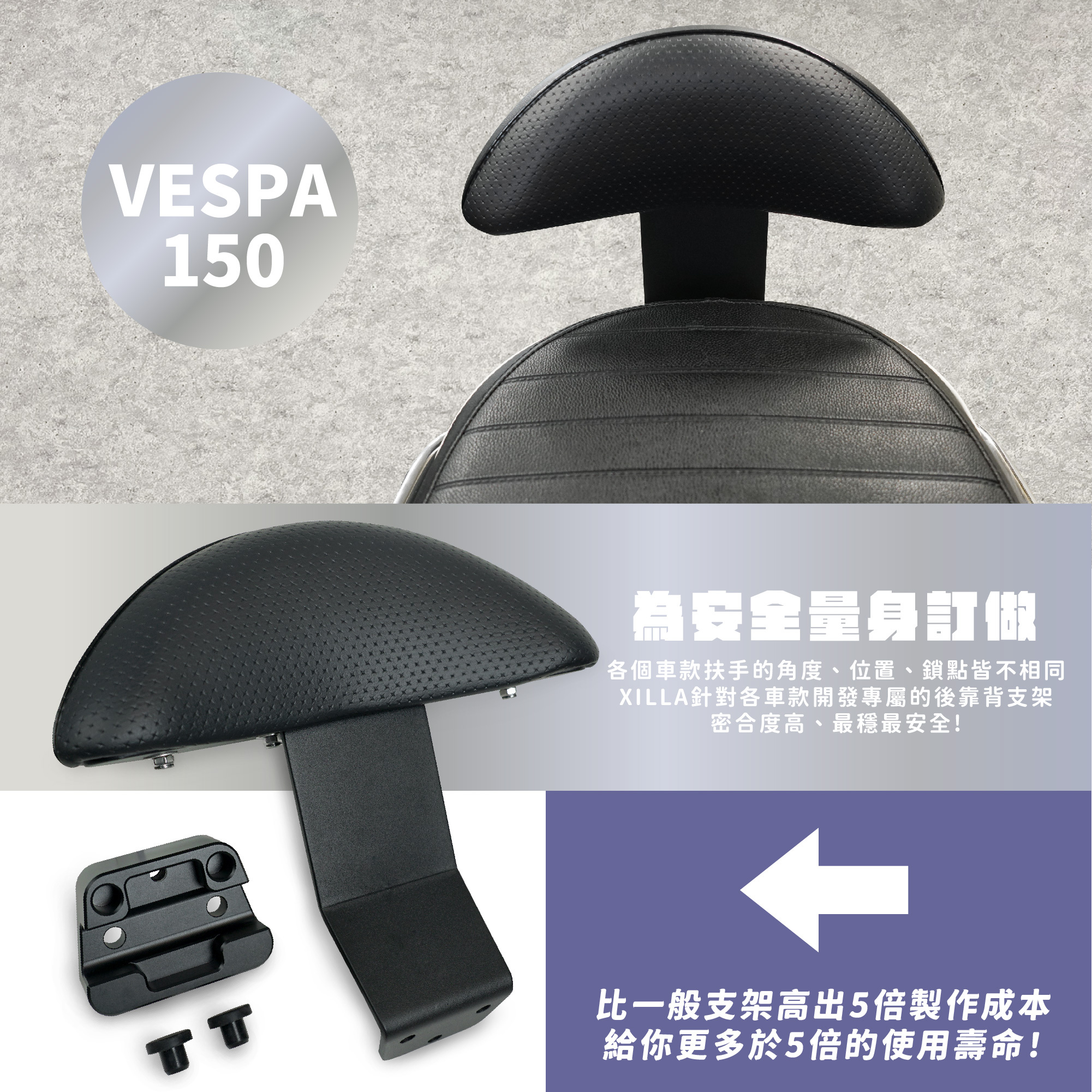 XILLA 偉士牌 Vespa Sprint 春天 150 後靠背推薦!MIT台灣製造,優質小饅頭泡棉、耐用鋼板與雙層防鏽處理,使用壽命長達10年以上。完美密合原廠後扶手與坐墊,支撐力加倍,安裝簡便,給後座滿滿安全感。支架、靠墊精密設計,穩固耐用,讓您的騎乘更舒適安心!