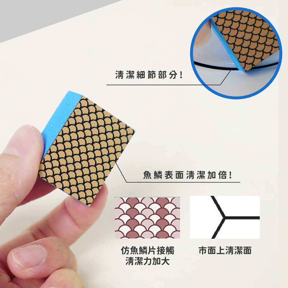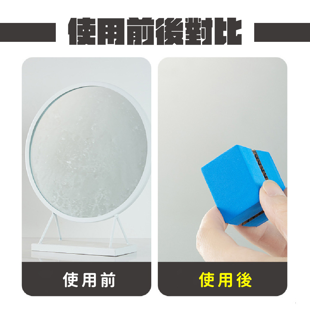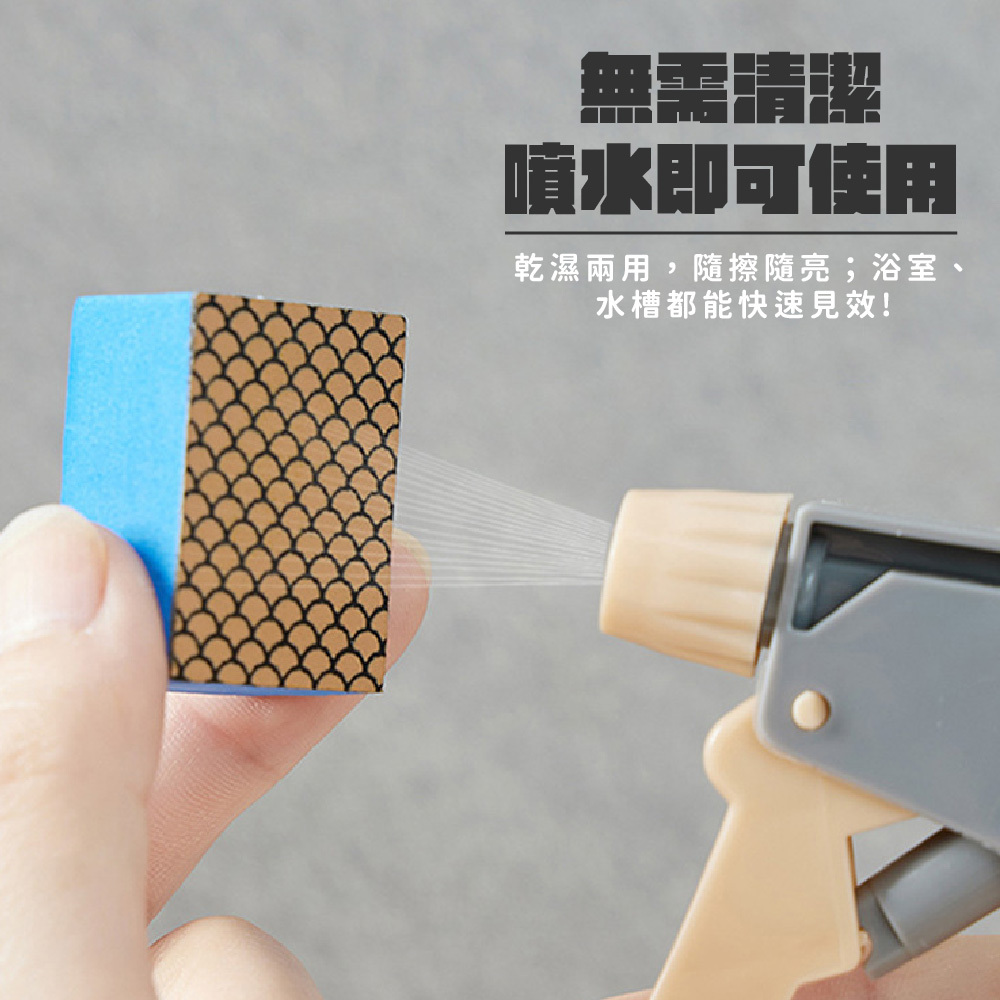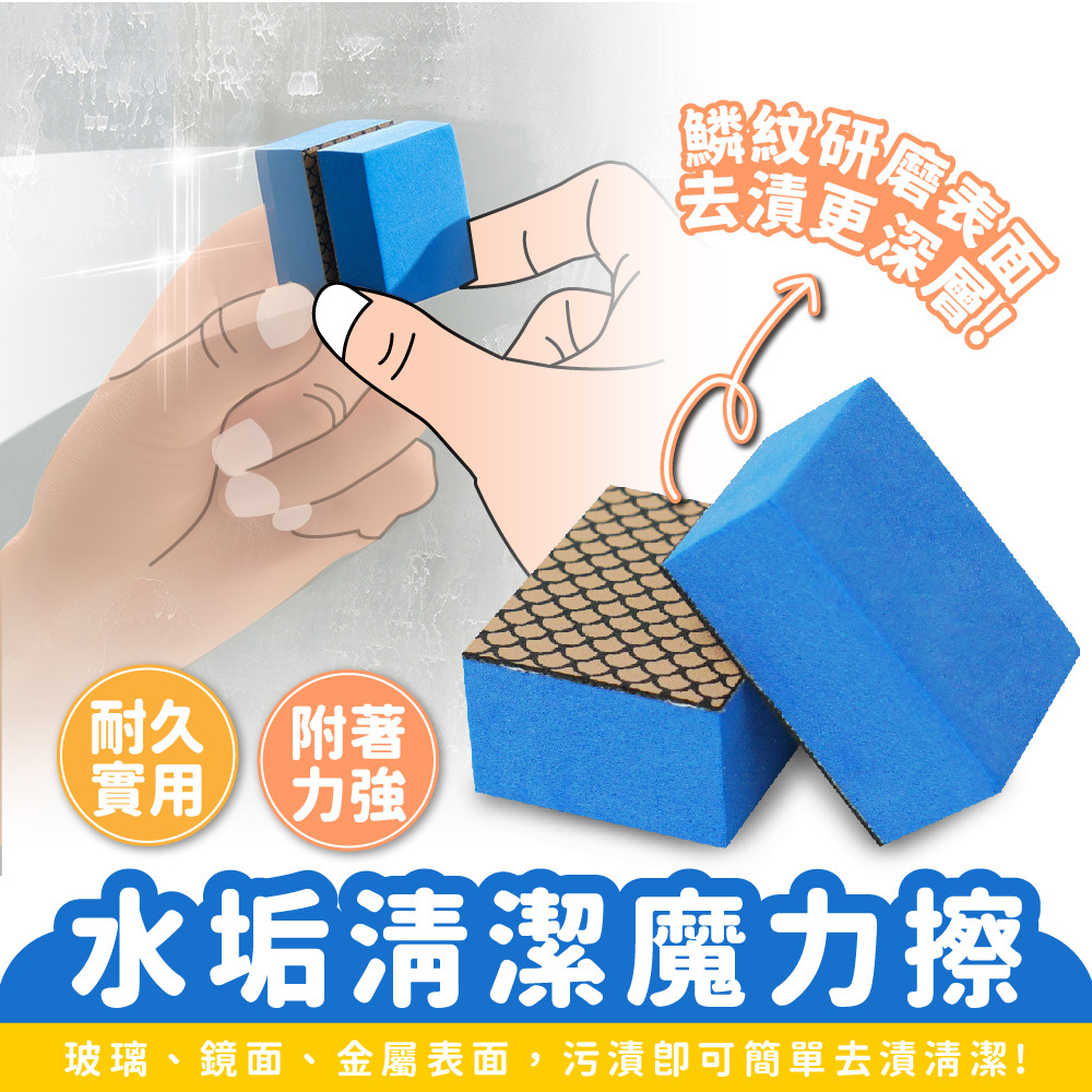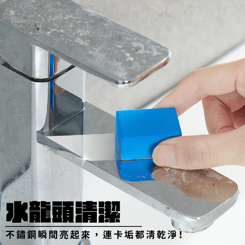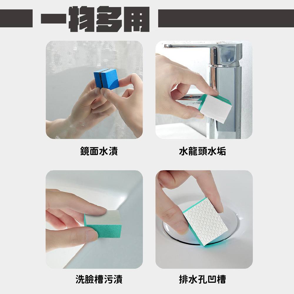 水垢清潔魔力擦採用高密度納米材質,無需清潔劑就能輕鬆去除水龍頭、鏡面、玻璃、磁磚等處的頑固水垢與皂垢。乾擦濕擦皆可用,去污不傷表面,是浴室、廚房的清潔好幫手!