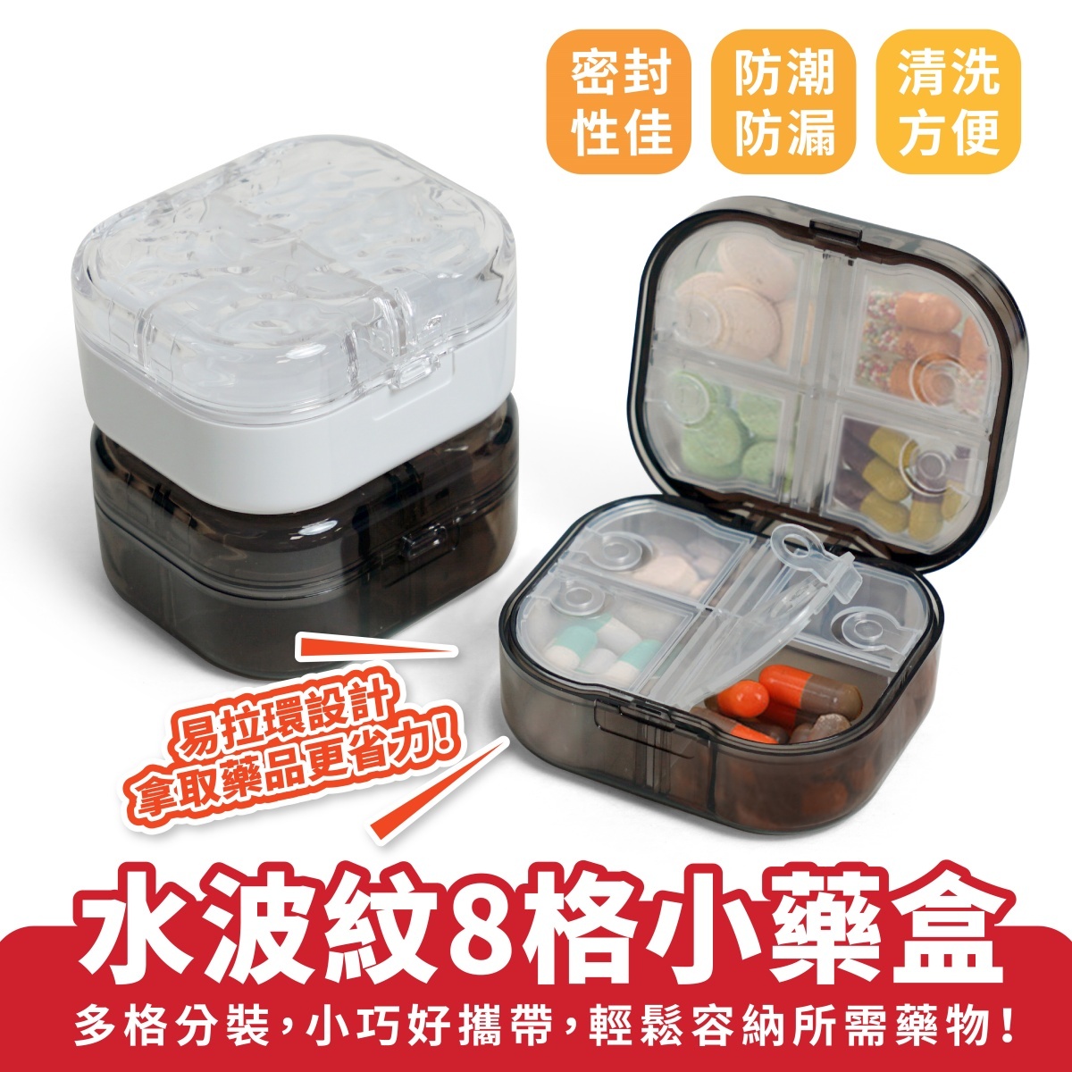 水波紋8格小藥盒,以獨特水波紋設計展現簡約美感,小巧體積卻擁有充足容量,讓藥品清晰分類、井然有序。採用AS、ABS、PP多重材質結合,堅固耐用且無毒安心。每格獨立密封,防潮防漏,保護藥品品質;搭配貼心易拉環設計,取用藥物更輕鬆不費力。可拆卸結構,方便清洗重複使用,特別適合隨身攜帶與旅行使用。無論日常保健或定時服藥,都能給你更舒適、有質感的用藥體驗。