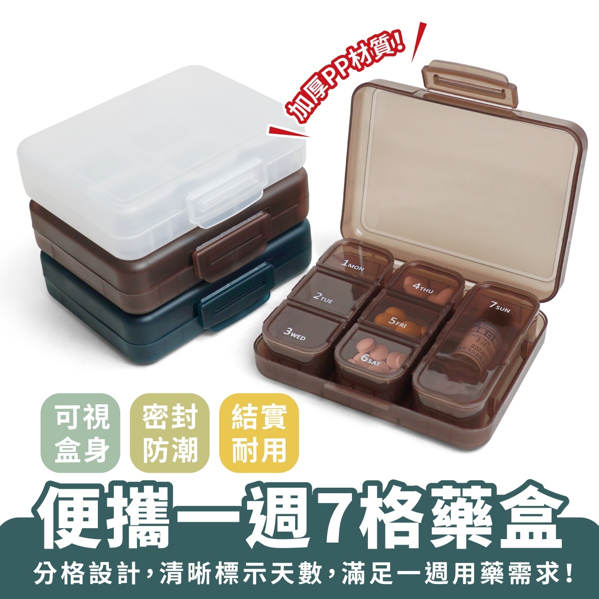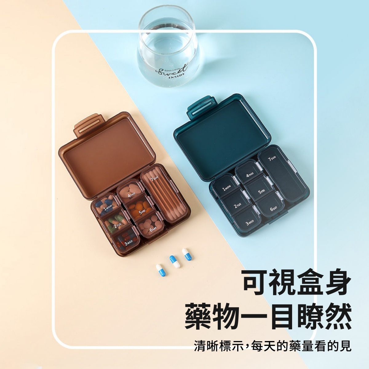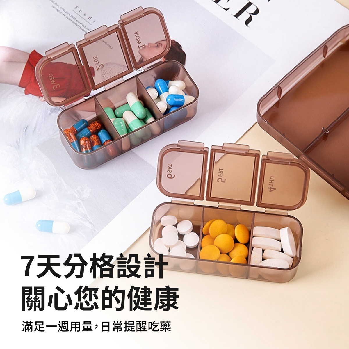 便攜一週7格藥盒,讓您每日用藥管理更有條理。外層收納盒搭配內部分格小藥盒,雙重密封保護設計,防止藥品受潮、灑落,更安心好攜帶。加厚PP材質結構穩固,不易變形,耐用又環保。透明可視盒身設計搭配清晰標示的每日天數,輕鬆辨識每格藥品,提升用藥效率與準確性。整體尺寸為 11×8.5×2.8cm,適合隨身攜帶、旅行或日常使用,幫助您從容掌握每一天的健康計畫。