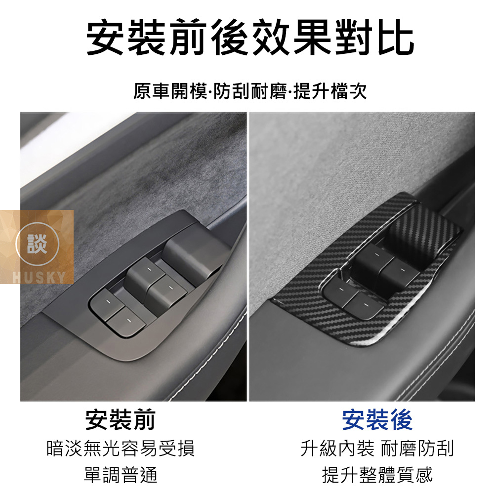 車窗玻璃升降面板裝飾框,專為特斯拉煥新 Model 3設計,完美貼合車窗玻璃升降面板,提升車內質感。採用專用無痕背膠膠黏貼設計,輕鬆安裝且不會損傷車漆,讓您的愛車保持原貌。圓滑的包裝設計有效避免對車內內裝的損傷,提供安全無憂的安裝體驗。這款裝飾框不僅能增添車內美觀,還能保護車窗升降面板免受刮花,讓您的特斯拉保持長久如新。
