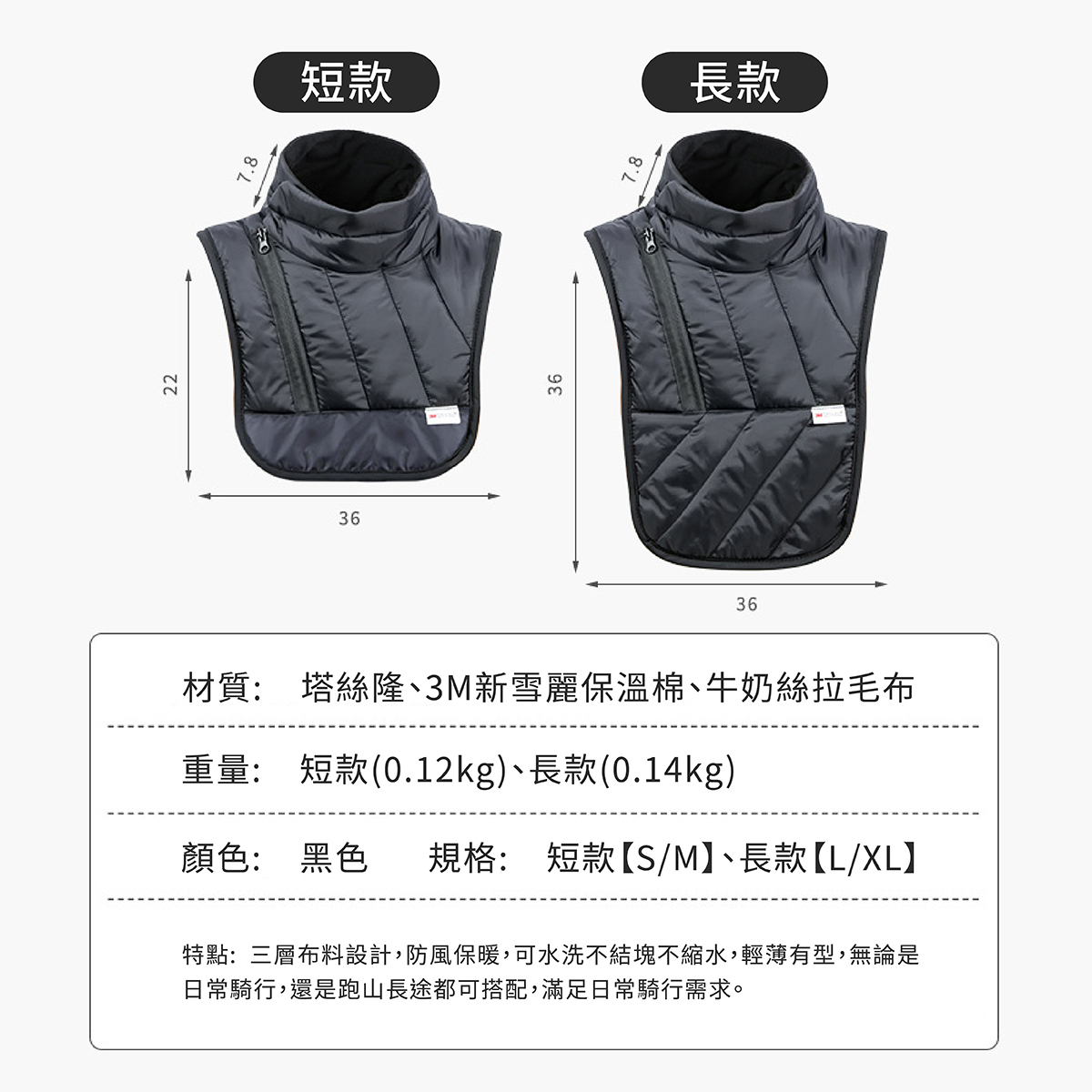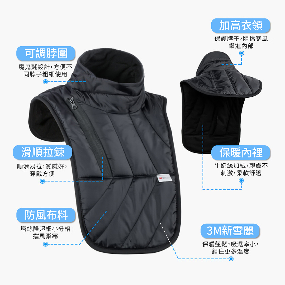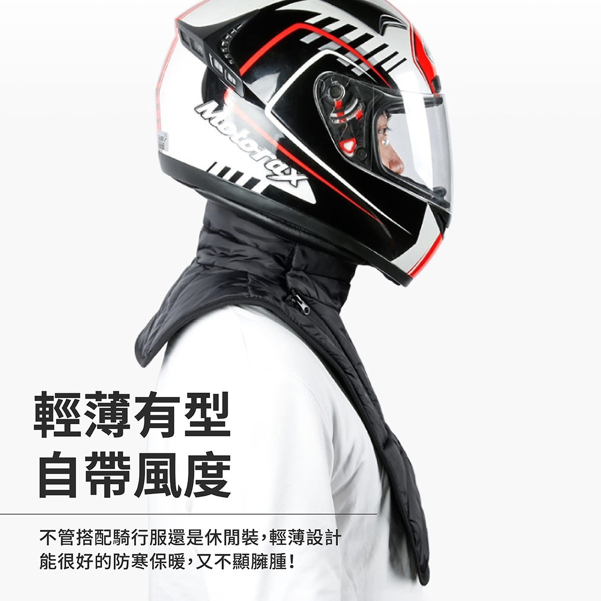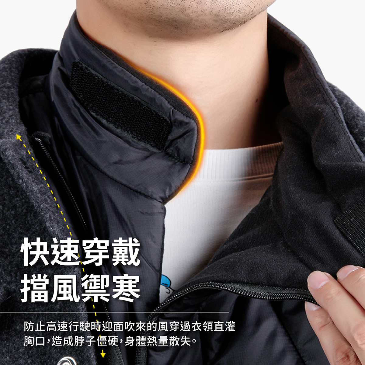 🏆有效防止騎車時冷風直灌衣領,造成脖子僵硬,熱量散失