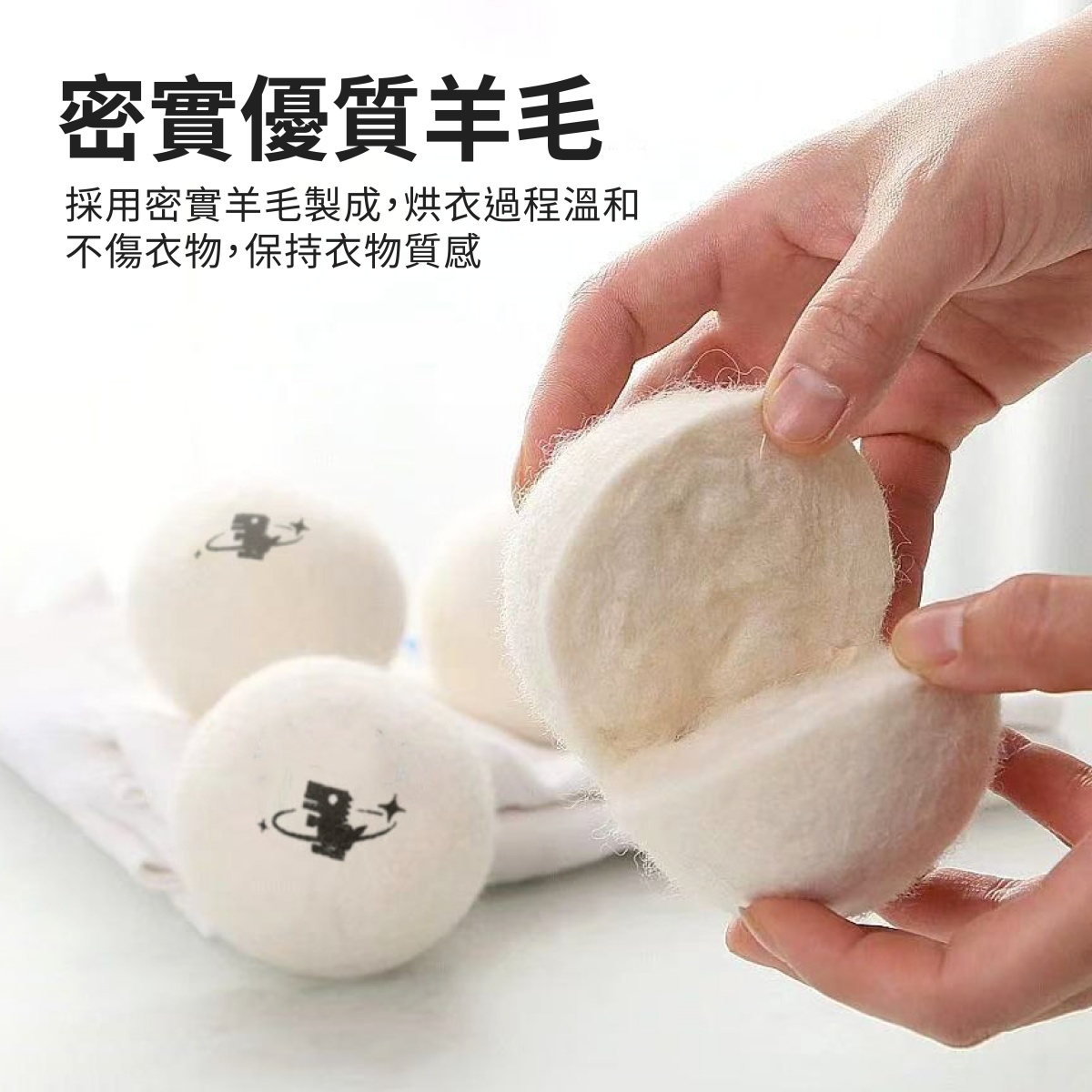 防纏繞羊毛烘衣球,採用密實優質羊毛製成,柔軟親膚,不傷衣物,能有效防止衣物在烘乾過程中纏繞打結,讓烘乾更快速高效。使用時可自然吸附濕氣,減少潮濕與異味,並降低靜電產生,使衣物更加柔順好穿。羊毛球能蓬鬆衣物纖維,減少皺褶,穿著更舒適。還能吸附毛絮與線頭,保持衣物清爽潔淨。一組可長期使用達 2-4 年,經濟又環保,是家庭烘衣的必備好幫手。無論日常衣物或嬰幼兒衣物,都能安心使用,讓您的居家烘乾更健康、更便利。