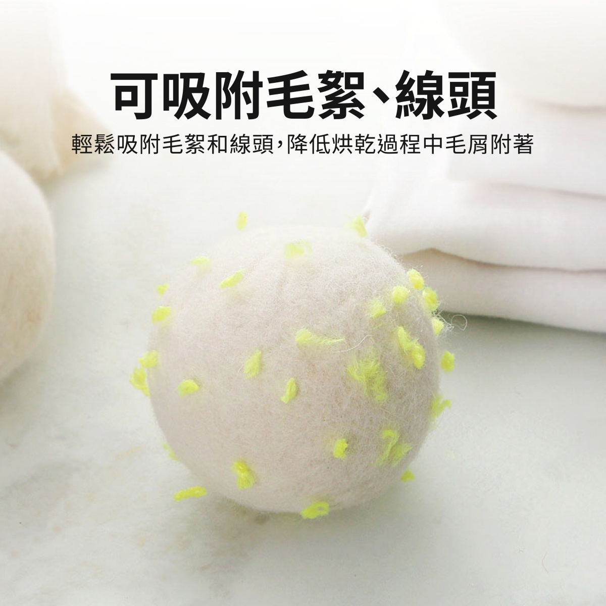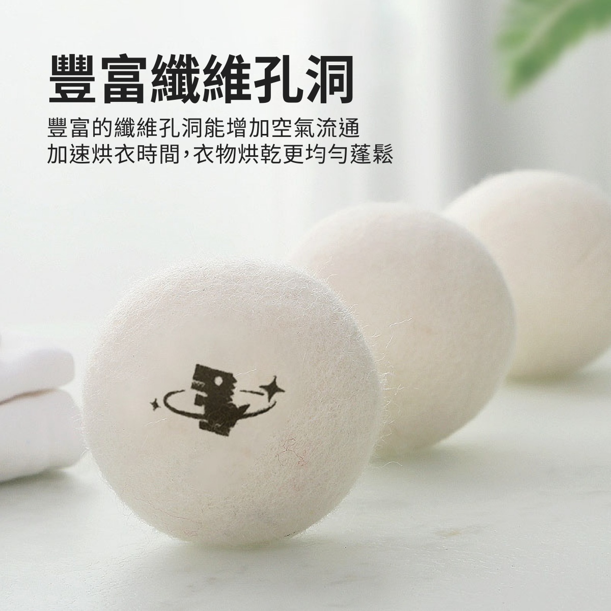 3.烘衣球在使用後可能會沾上衣物纖維,這並不是髒污,仍可繼續使用。隨著時間,烘衣球表面會覆蓋各種線頭、毛髮,影響效果時,可適度修剪後再使用。